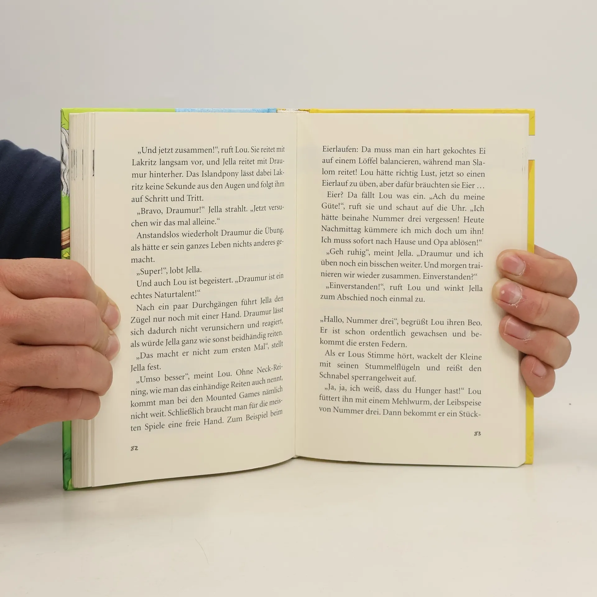 Welches Pony hat schon Platz für zwei? Richtig: gar keins. Nicht mal Lakritz. Und deswegen wird es höchste Zeit, dass Lous Freundin Jella ein eigenes Pony bekommt. Wie gerufen stehen da ganz besondere Feriengäste auf der Weide des Reitclubs: vier wuschelige Islandponys. Und Lou und Jella dürfen sie pflegen! Als die Ponys wieder zurückmüssen, ist Jella untröstlich. Denn sie hat sich Hals über Kopf in den Isländer Draumur mit der wilden, lockigen Mähne verliebt.