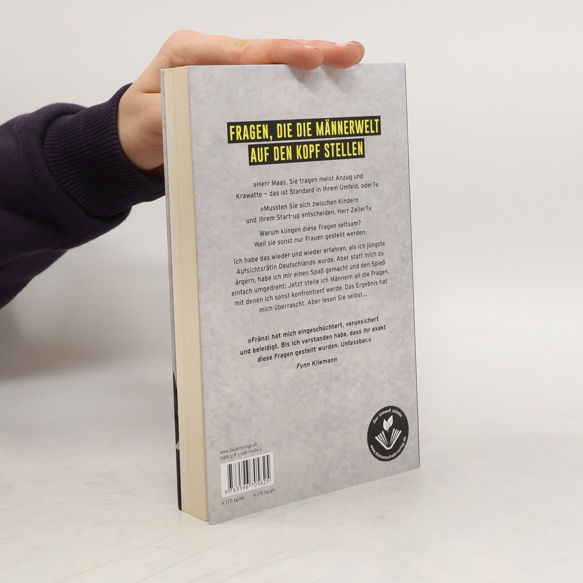 Aufsichtsrätin und Mutter Fränzi Kühne bietet eine überraschende und unterhaltsame Perspektive auf das, was in Sachen Gleichberechtigung immer noch falsch läuft. »Herr Maas, Sie tragen meist Anzug und Krawatte – das ist Standard in der Politik, oder?« »Mussten Sie sich zwischen Kindern und Ihrem Start-up entscheiden, Herr Zeiler?« Warum klingen diese Fragen seltsam? Weil sie sonst nur Frauen gestellt werden. Ich habe das am eigenen Leib erfahren, als ich jüngste Aufsichtsrätin Deutschlands wurde. Aber statt mich zu ärgern, habe ich mir einen Spaß gemacht und den Spieß einfach umgedreht: Jetzt stelle ich Männern all die Fragen, mit denen ich sonst konfrontiert werde. Das Ergebnis hat mich überrascht. Aber lesen Sie selbst… »Fränzi hat mich eingeschüchtert, verunsichert und beleidigt. Bis ich verstanden habe, dass ihr exakt diese Fragen gestellt wurden. Unfassbar.« Fynn Kliemann Fränzi fragt, diese Männer antworten: Jürgen Bornschein, Axel Bosse, Jörg Eigendorf, Rainer Esser, Holger Friedrich, Gregor Gysi, Lars Hellmeyer, Joe Kaeser, Friedrich Kautz, Fynn Kliemann, Frater Rafael Maria Klose, Heiko Maas, Christoph Mönnikes, Julian Otto alias Bausa, Christian Rach, Frank Thelen, Helmut Thoma, Ole von Beust, Jean-Remy von Matt, Frank-Peter Weiß, Peter Wittkamp und Waldemar Zeiler