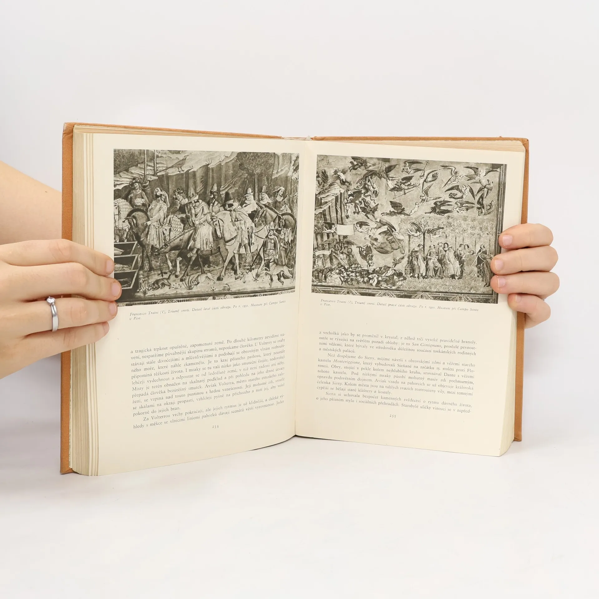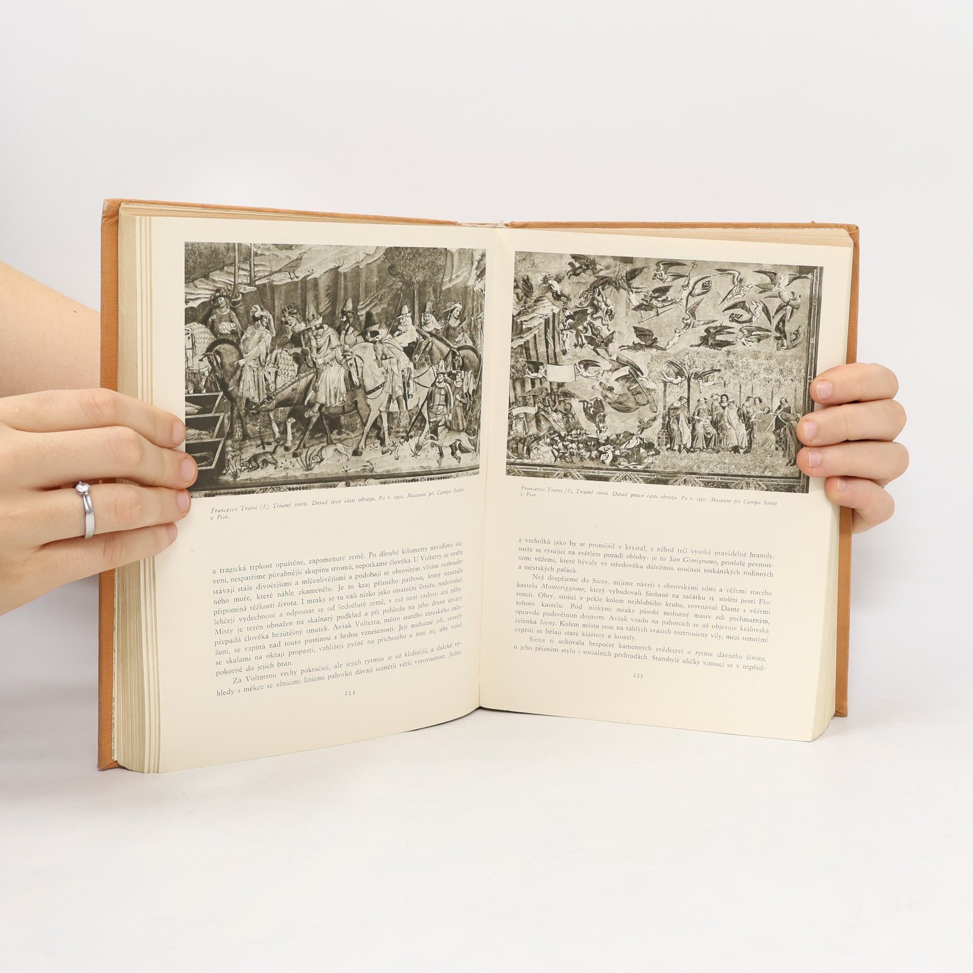 Plně sjednocený historický a cestopisný esejistický výklad, v němž charakteristiky měst, uměleckých celků a osobností se střídají s osobními dojmy, postřehy a zároveň i historickými úvahami. Autor začíná návštěvou Paesta, kde architektonicky lze postihnout ráz řeckého umění a jehopřínos italské pevnině. V Pompejích sleduje působení řecké kultury na římské prostředí. Procházka neapolskými ulicemi ukazuje složité vztahy tohoto města i celé Itálie k evropským dějinám. Těžištěm knihy je Řím, v němž zanechaly stopy všechny dějinné éry. Cesta na sever do toskánských měst, především do Florencie, obsahuje podrobné vylíčení zrodu renesance a jejího rozvoje v dílech umělců, kteří patří k největším ve světovém umění. Putování směruje pak přes Bolognu a Padovu do Benátek, střediska umění od renesance až po rokoko. Publikace se uzavírá poznáním, že na konci 18. stol. leží závěr epochy, kdy italské umění mělo v celoevropském měřítku vedoucí význam.