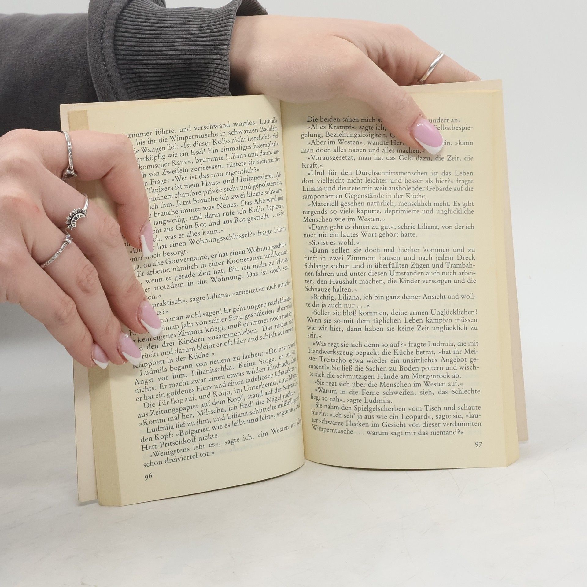 Die Reise beginnt nicht mit dem gebuchten Flugzeug und die Landung auf einem winzigen Flughafen am Schwarzen Meer ist unplanmäßig. Wie die Passagiere aus Paris dennoch irgendwann nach Sofia gelangen, ist abenteuerlich. Doch Angelika Schrobsdorff trägt das alles mit Humor. Sie kennt die Verhältnisse, hat sie doch als Kind mit ihrer Mutter, einer deutschen Jüdin, acht Jahre als Emigrantin in Bulgarien gelebt. Sehnsüchtig wird sie von ihrer Jugendfreundin Ludmilla erwartet, die alsbald zu einem Gegenbesuch nach Paris aufbricht. Die Begegnungen zwischen den beiden Jugendfreundinnen werden zum Ausgangspunkt amüsant geplauderter, aber mit analytischer Ironie erfasster Beobachtungen über Konsum und Liebe, Freiheit und Glück in Ost und West. Simone de Beauvoir hat das Vorwort zu diesen interessanten Gesprächen geschrieben.