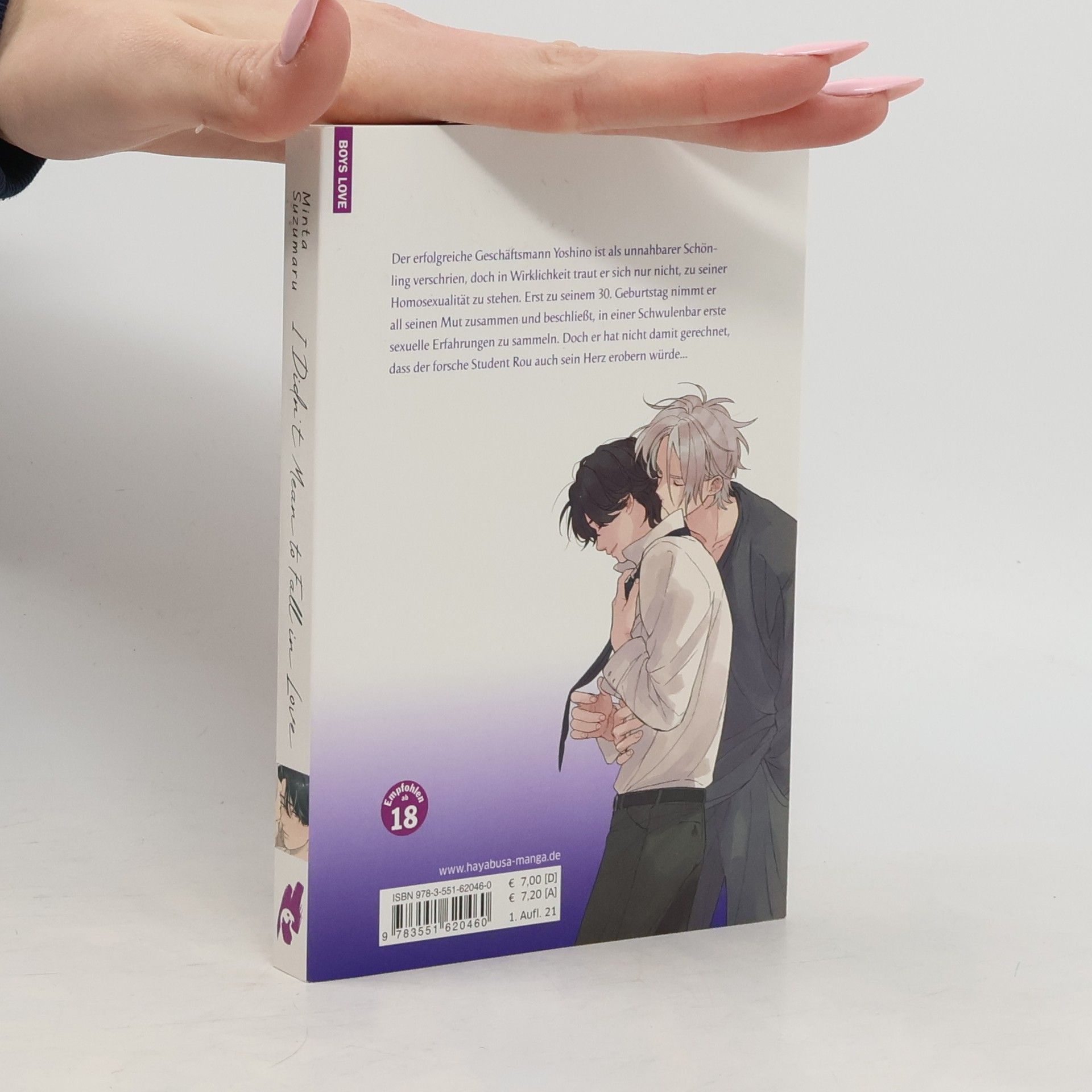 Ein erotischer Yaoi-Einzelband über gegenseitige Anziehungskraft und erste Liebe!  Der erfolgreiche Geschäftsmann Yoshino ist als unnahbarer Schönling verschrien. Doch in Wirklichkeit traut er sich nur nicht, zu seiner Homosexualität zu stehen und sehnt sich nach einer ganz normalen Liebesbeziehung.  Mit seinem 30. Geburtstag nimmt er nun all seinen Mut zusammen und beschließt, etwas an seiner Situation zu ändern: Zum ersten Mal in seinem Leben besucht er eine Schwulenbar, um wenigstens erste körperliche Erfahrungen zu machen. Doch er hat nicht damit gerechnet, dass der forsche Student Rou auch sein Herz erobern würde... Weitere Informationen: - Einzelband