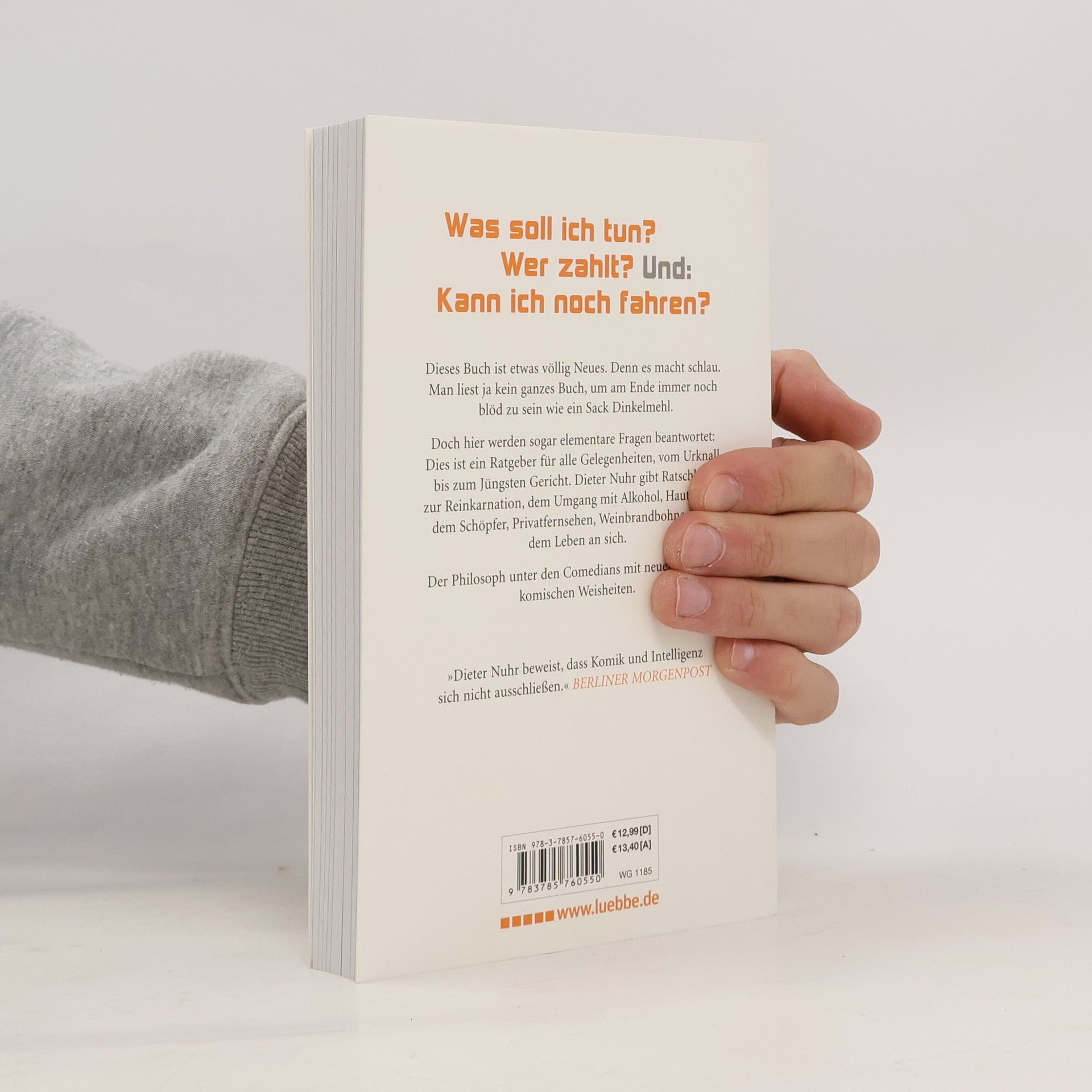Dieses Buch ist etwas völlig Neues. Denn es macht schlau. Man liest ja kein ganzes Buch, um am Ende immer noch blöd zu sein wie ein Sack Dinkelmehl. Doch hier werden sogar elementare Fragen beantwortet: Dies ist ein Ratgeber für alle Gelegenheiten, vom Urknall bis zum Jüngsten Gericht. Dieter Nuhr gibt Ratschläge zur Reinkarnation, dem Umgang mit Alkohol, Hautcreme, dem Schöpfer, Privatfernsehen, Weinbrandbohnen und dem Leben an sich. Der Philosoph unter den Comedians mit neuen brüllend komischen Weisheiten.