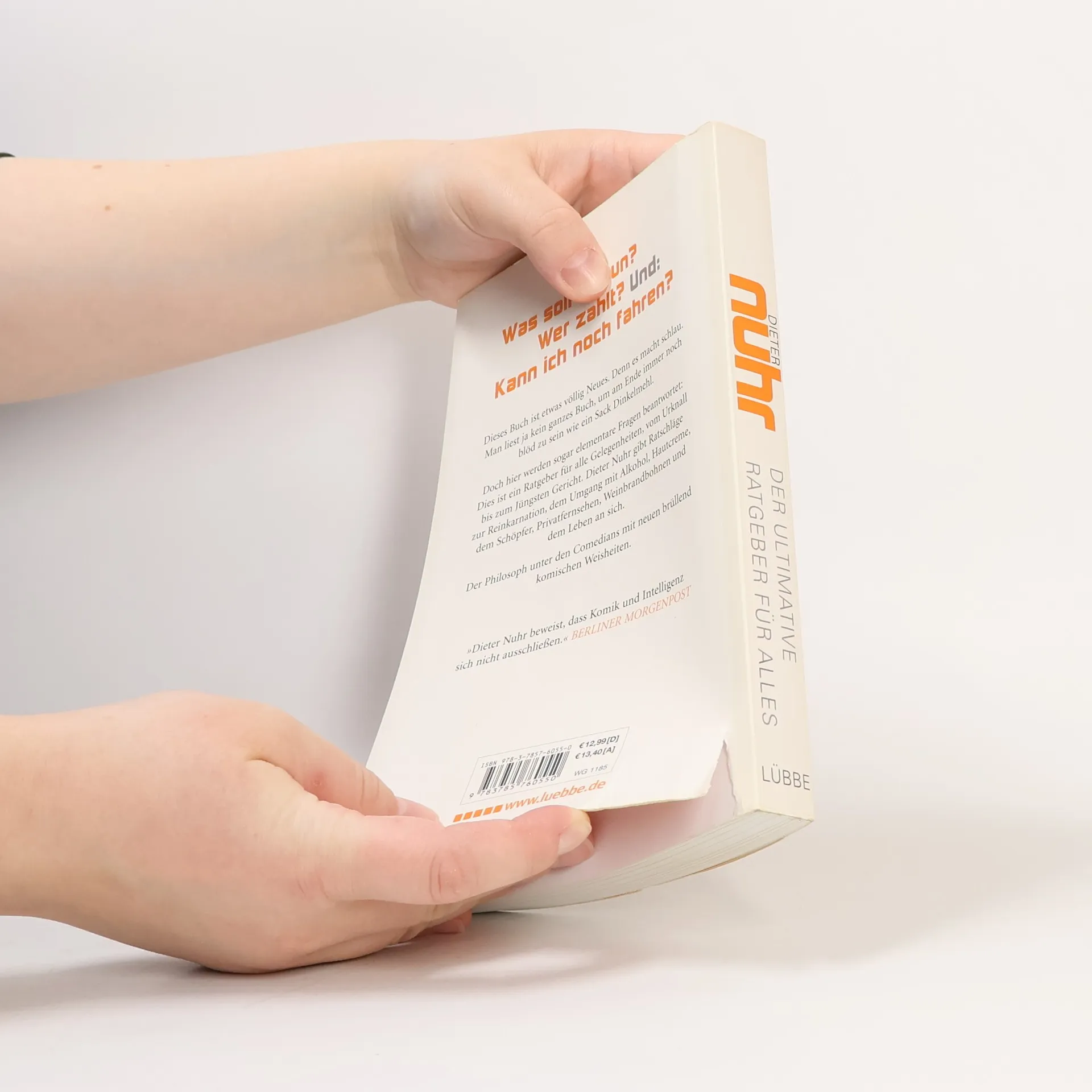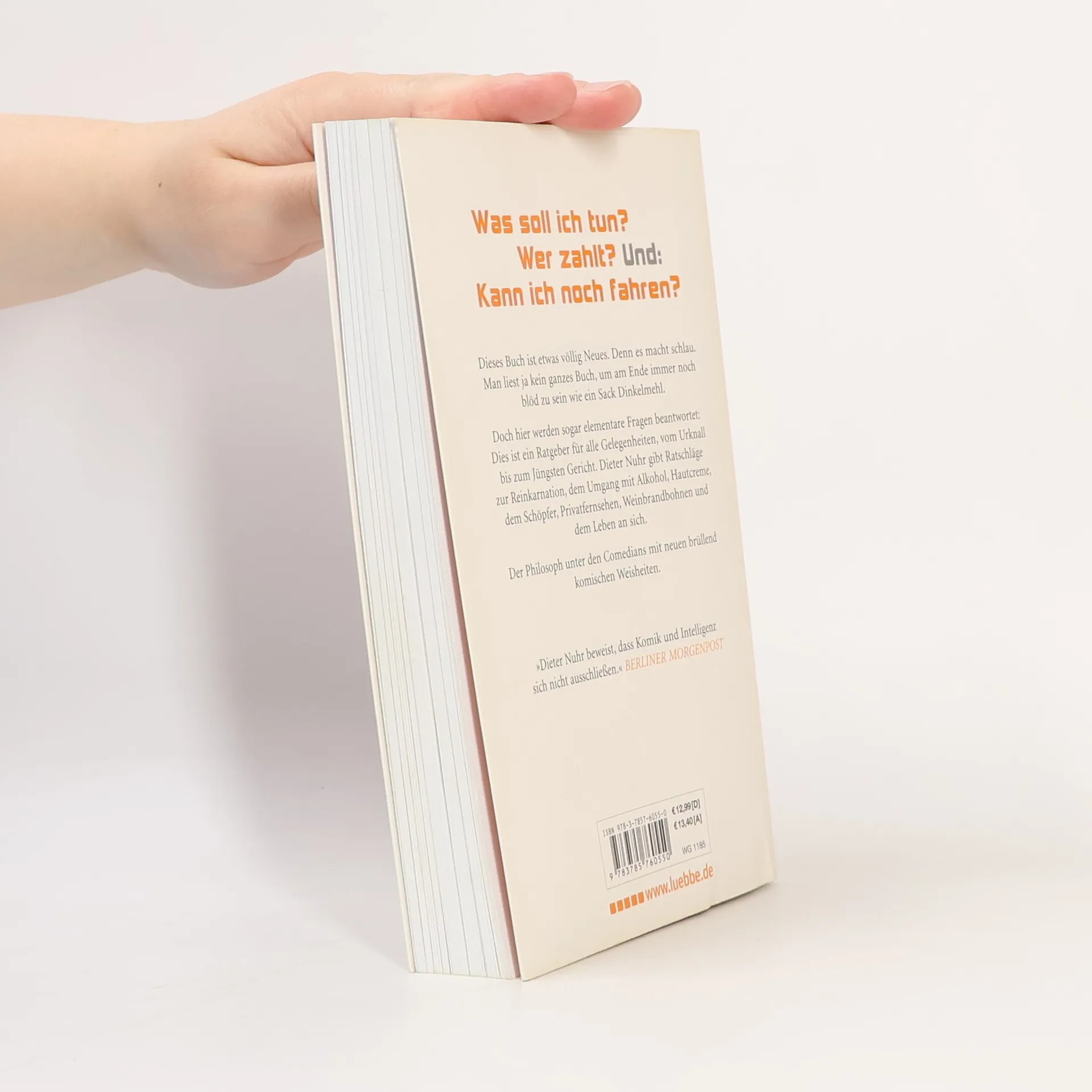 Dieses Buch ist etwas völlig Neues. Denn es macht schlau. Man liest ja kein ganzes Buch, um am Ende immer noch blöd zu sein wie ein Sack Dinkelmehl. Doch hier werden sogar elementare Fragen beantwortet: Dies ist ein Ratgeber für alle Gelegenheiten, vom Urknall bis zum Jüngsten Gericht. Dieter Nuhr gibt Ratschläge zur Reinkarnation, dem Umgang mit Alkohol, Hautcreme, dem Schöpfer, Privatfernsehen, Weinbrandbohnen und dem Leben an sich. Der Philosoph unter den Comedians mit neuen brüllend komischen Weisheiten.