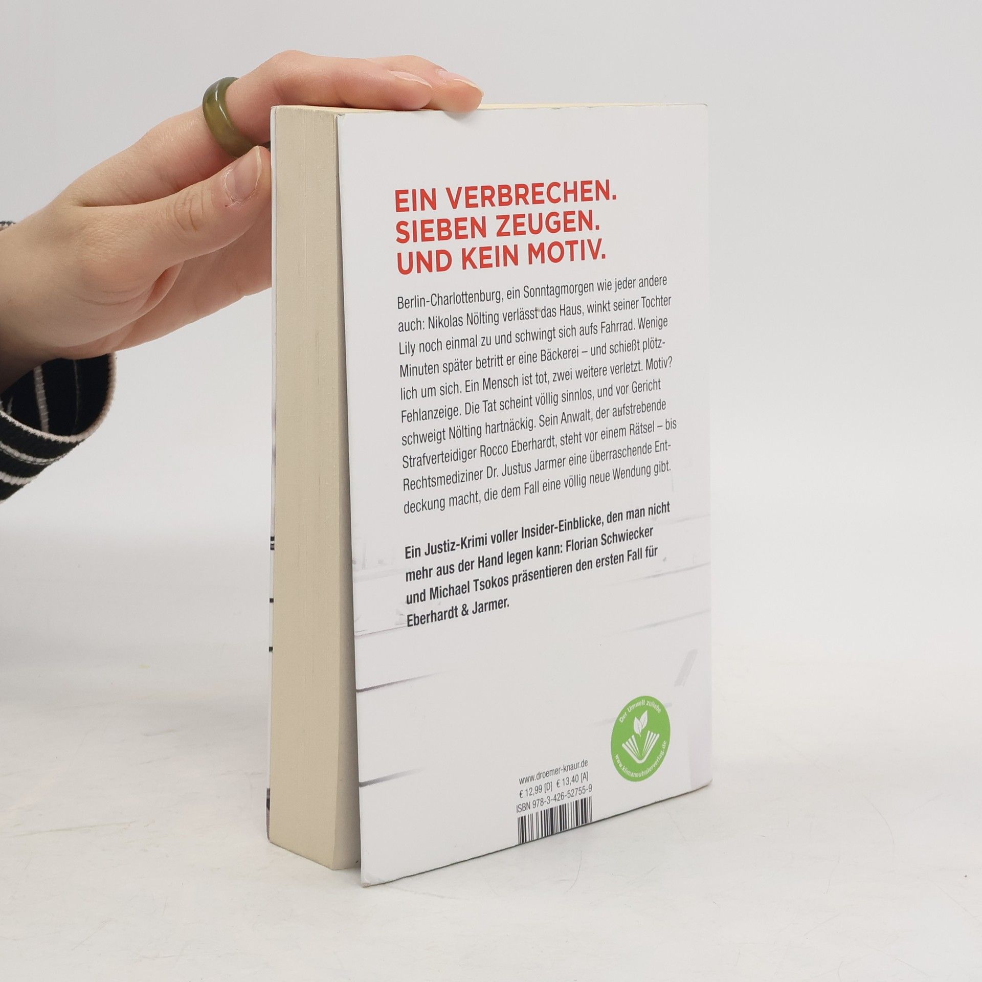 Hochspannend und 100% authentisch: Der erste Teil einer neuen Justiz-Krimi-Reihe aus Berlin bietet Insider-Einblicke des ehemaligen Strafverteidigers Florian Schwiecker und des Rechtsmediziners Michael Tsokos. An einem gewöhnlichen Sonntag verlässt der Verwaltungsbeamte Nikolas Nölting sein Haus in Berlin-Charlottenburg, winkt seiner Tochter zu und fährt zur Bäckerei. Plötzlich schießt er ohne Vorwarnung um sich. Ein Mensch ist tot, zwei weitere verletzt – und Nölting schweigt. Sein Anwalt Rocco Eberhardt steht vor einem Rätsel: Welches Motiv könnte der unauffällige Familienvater für diese Tat gehabt haben? Die Situation erscheint sinnlos, bis Dr. Justus Jarmer, der Rechtsmediziner, eine überraschende Entdeckung macht. Diese führt Eberhardt in einen Sumpf aus Korruption, Geldwäsche und Clan-Kriminalität. Doch die Auseinandersetzung mit der Berliner Unterwelt birgt große Gefahren. In dieser Justiz-Krimi-Reihe um Eberhardt und Jarmer gewähren die Autoren tiefen Einblick in ihren Berufsalltag: Schwiecker hat lange als Strafverteidiger gearbeitet, während Tsokos das Institut für Rechtsmedizin der Berliner Charité leitet.