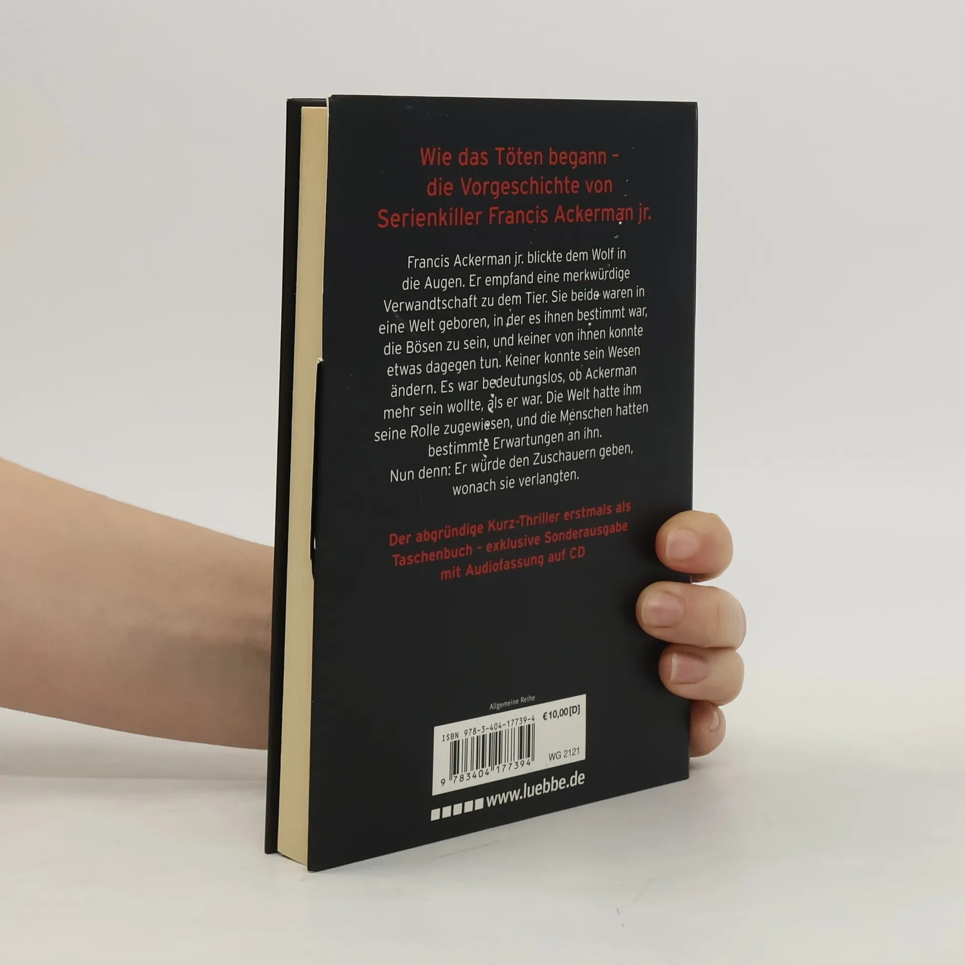 Wie das Töten begann - die Vorgeschichte von Francis Ackerman jr. erstmals im Taschenbuch Francis Ackerman jr. blickte dem Wolf in die Augen. Er empfand eine merkwürdige Verwandtschaft zu dem Tier. Sie beide waren in eine Welt geboren, in der es ihnen bestimmt war, die Bösen zu sein, und keiner von ihnen konnte etwas dagegen tun. Keiner konnte sein Wesen ändern. Es war bedeutungslos, ob Ackerman mehr sein wollte, als er war. Die Welt hatte ihm seine Rolle zugewiesen, und die Menschen hatten bestimmte Erwartungen an ihn.Nun denn: Er würde den Zuschauern geben, wonach sie verlangten.