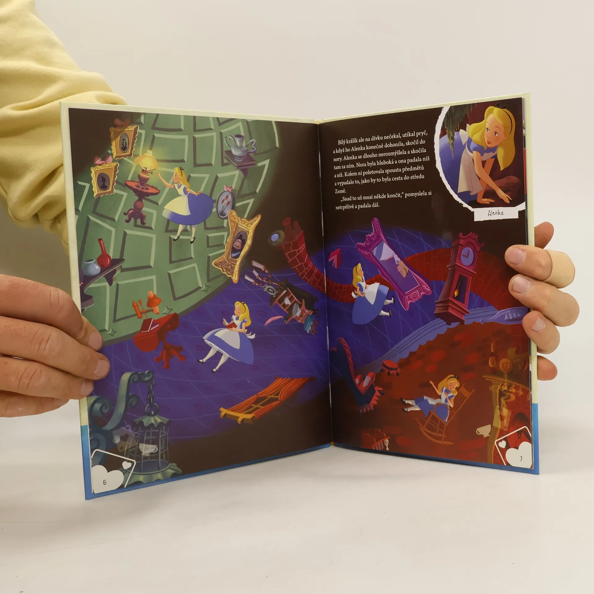 Byl krásný letní den a Alenku už nebavilo poslouchat svou sestru, která jí předčítala šíleně nudnou knihu. Ponořila se tedy do svých vlastních představ a začala snít o kouzelném světě, ve kterém všechna zvířata i věci uměly mluvit.