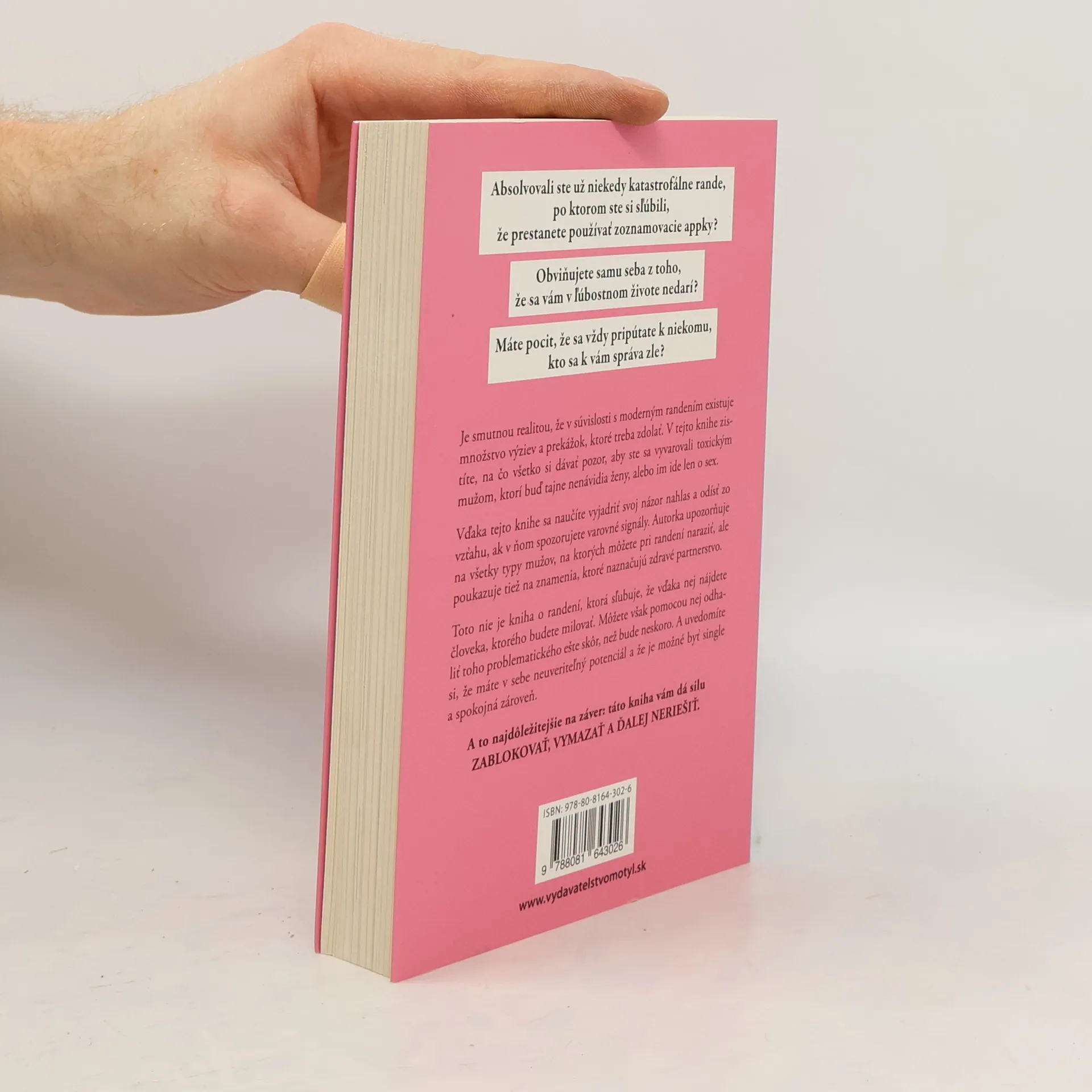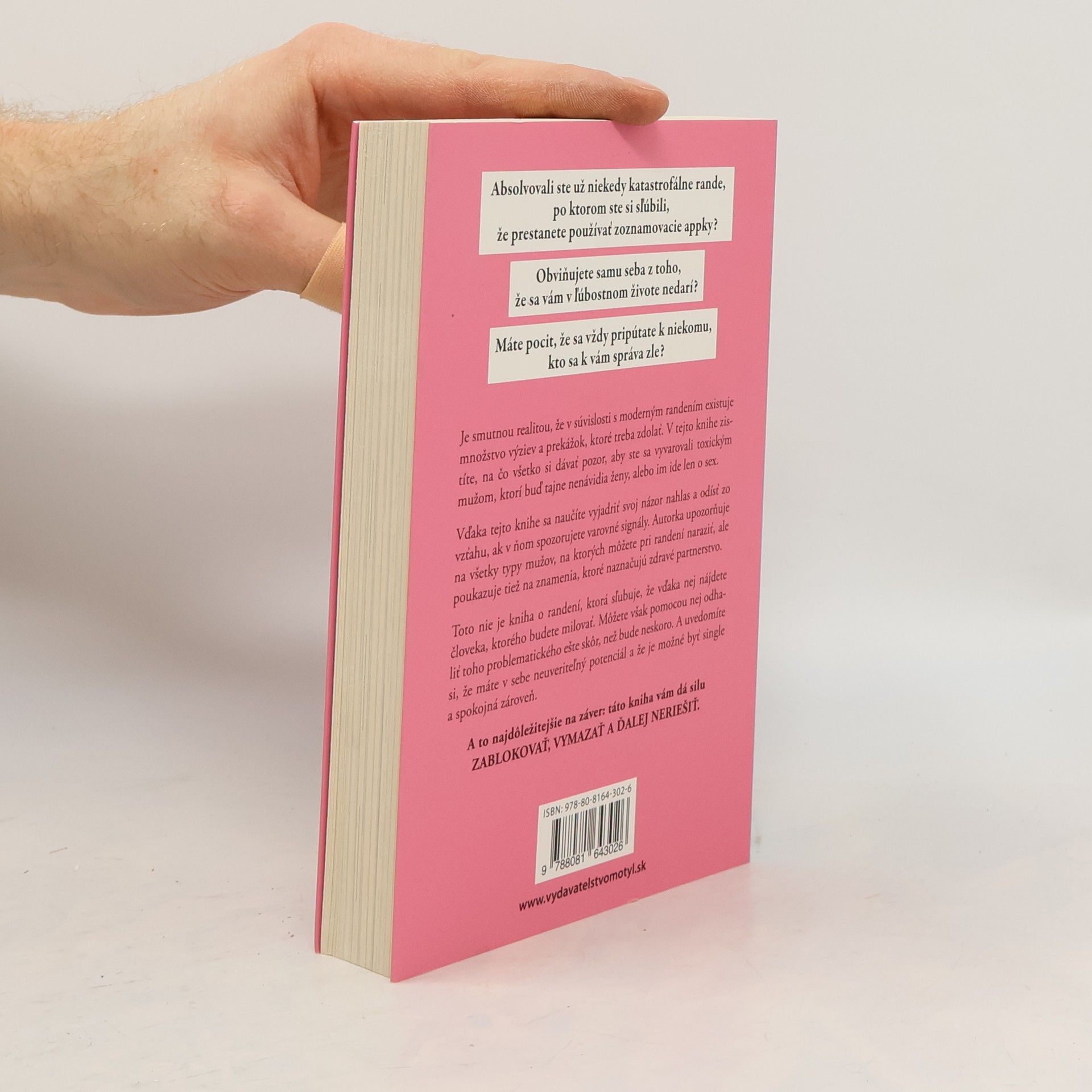 Príručka, ako randiť a vyhnúť sa toxickým mužom.Absolvovali ste už niekedy katastrofálne rande, po ktorom ste si sľúbili, že prestanete používať zoznamovacie appky? Obviňujete samu seba z toho, že sa vám v ľúbostnom živote nedarí? Máte pocit, že sa vždy pripútate k niekomu, kto sa k vám správa zle?Je smutnou realitou, že v súvislosti s moderným randením existuje množstvo výziev a prekážok, ktoré treba zdolať. V tejto knihe zistíte, na čo všetko si dávať pozor, aby ste sa vyvarovali toxickým mužom, ktorí buď tajne nenávidia ženy, alebo im ide len o sex. Vďaka tejto knihe sa naučíte vyjadriť svoj názor nahlas a odísť zo vzťahu, ak v ňom spozorujete varovné signály. Autorka upozorňuje na všetky typy mužov, na ktorých môžete pri randení naraziť, ale poukazuje tiež na znamenia, ktoré naznačujú zdravé partnerstvo. Toto nie je kniha o randení, ktorá sľubuje, že vďaka nej nájdete človeka, ktorého budete milovať. Môžete však pomocou nej odhaliť toho problematického ešte skôr, než bude neskoro. A uvedomíte si, že máte v sebe neuveriteľný potenciál a že je možné byť single a spokojná zároveň.A to najdôležitejšie na záver: táto kniha vám dá silu ZABLOKOVAŤ, VYMAZAŤ A ĎALEJ NERIEŠIŤ.Randili ste s mužmi za posledných päť rokov, odkedy začali byť populárne zoznamovacie appky? Ak áno, asi presne viete, o čom hovorím, a ak nie, potom ste mali obrovské šťastie.Nemáte len jednu šancu byť skvelá, než sa vám skončí záruka. Nie ste potravina.