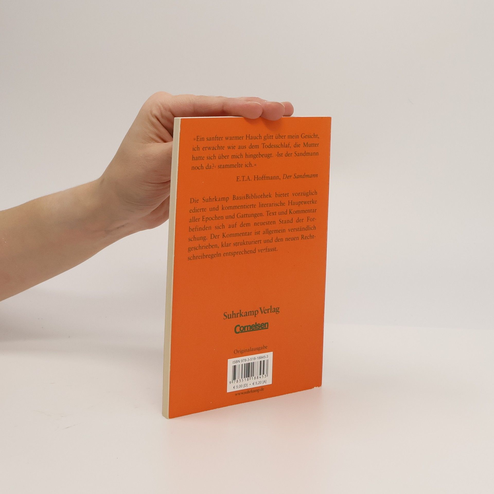 Diese Ausgabe der »Suhrkamp BasisBibliothek - Arbeitstexte für Schule und Studium« bietet nicht nur E. T. A. Hoffmanns berühmte Erzählung Der Sandmann , sondern auch einen Kommentar, der alle für das Verständnis des Buches erforderlichen Informationen enthält: eine Zeittafel zu Leben und Werk des Autors, ausführliche Hinweise zum kulturgeschichtlichen Hintergrund und den Quellen der Erzählung, die Entstehungsgeschichte, Deutungsansätze, Literaturhinweise sowie Wort- und Sacherläuterungen.