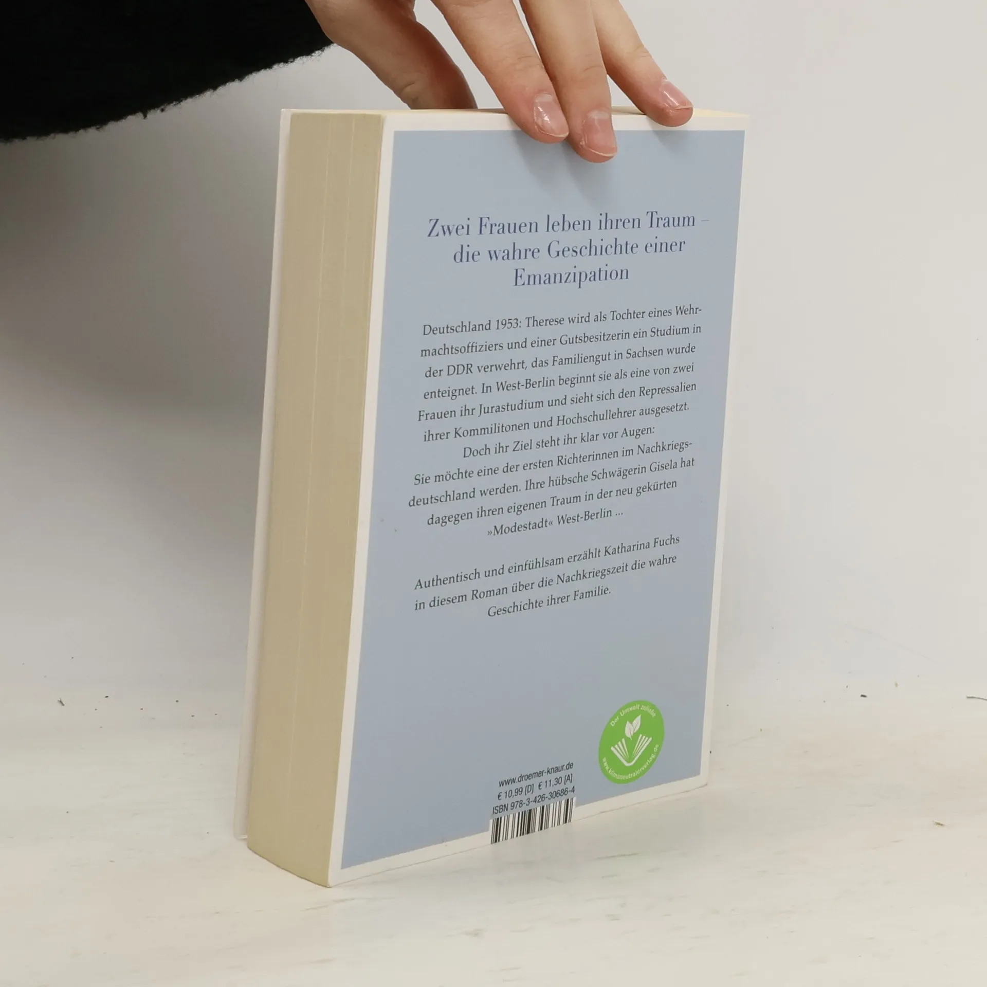 Zwei Frauen leben ihren Traum – gegen alle Widerstände der 50er Jahre. In diesem Roman erzählt Katharina Fuchs authentisch und einfühlsam die wahre Geschichte ihrer Tante, einer der ersten Vorsitzenden Richterinnen Deutschlands, und ihrer Mutter, einer Modemacherin in West-Berlin. Therese Trotha, Tochter eines Wehrmachtsoffiziers und einer Großgrundbesitzerin in der DDR, darf in den 50er Jahren nicht studieren und zieht nach West-Berlin. Dort erlebt sie, wie die wachsenden Unterschiede zwischen Ost und West ihre Familie auseinanderbrechen. Ihr Jura-Studium wird durch konservative Professoren und Kommilitonen erschwert. Verständnis für ihre Träume findet sie nur bei ihrer Schwägerin Gisela, die ebenfalls aus ihrer Rolle fällt: Die Schneiderin aus einfachen Verhältnissen möchte in der neu gekürten „Modestadt“ West-Berlin ihre eigene Modelinie entwickeln, anstatt sich mit einer traditionellen Hausfrauen-Ehe zufriedenzugeben. Katharina Fuchs fängt die Leben und Träume von Frauen in den 50er Jahren ein und verarbeitet sie zu einem bewegenden Roman über die Nachkriegszeit. Mit viel Liebe zum Detail lässt sie Zeitgeschichte und die Schicksale dieser beiden Frauen lebendig werden, während sie auch die wahre Geschichte ihrer Großmütter erzählt, die zwei Weltkriege überstehen mussten.