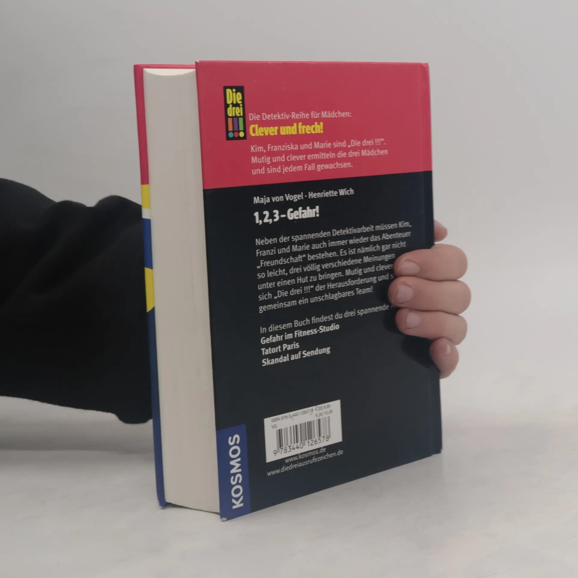 Drei spannende Abenteuer in einem Band: Gefahr im Fitnessstudio; Tatort Paris; Skandal auf Sendung. Ob zweifelhafte Vorfälle im Fitness-Studio, mysteriöse Machenschaften in der Metropole Paris oder Intrigen hinter der Kamera - Kim, Franzi und Marie, alias „Die drei !!!“ decken jede kriminelle Heimlichtuerei auf. Neben der spannenden Detektivarbeit müssen Kim, Franziska und Marie auch immer wieder das Abenteuer „Freundschaft“ bestehen. Es ist nämlich gar nicht so leicht, drei völlig verschiedene Meinungen unter einen Hut zu bringen. Mutig und clever stellen sich „Die drei !!!“ der Herausforderung und sind gemeinsam ein unschlagbares Team!