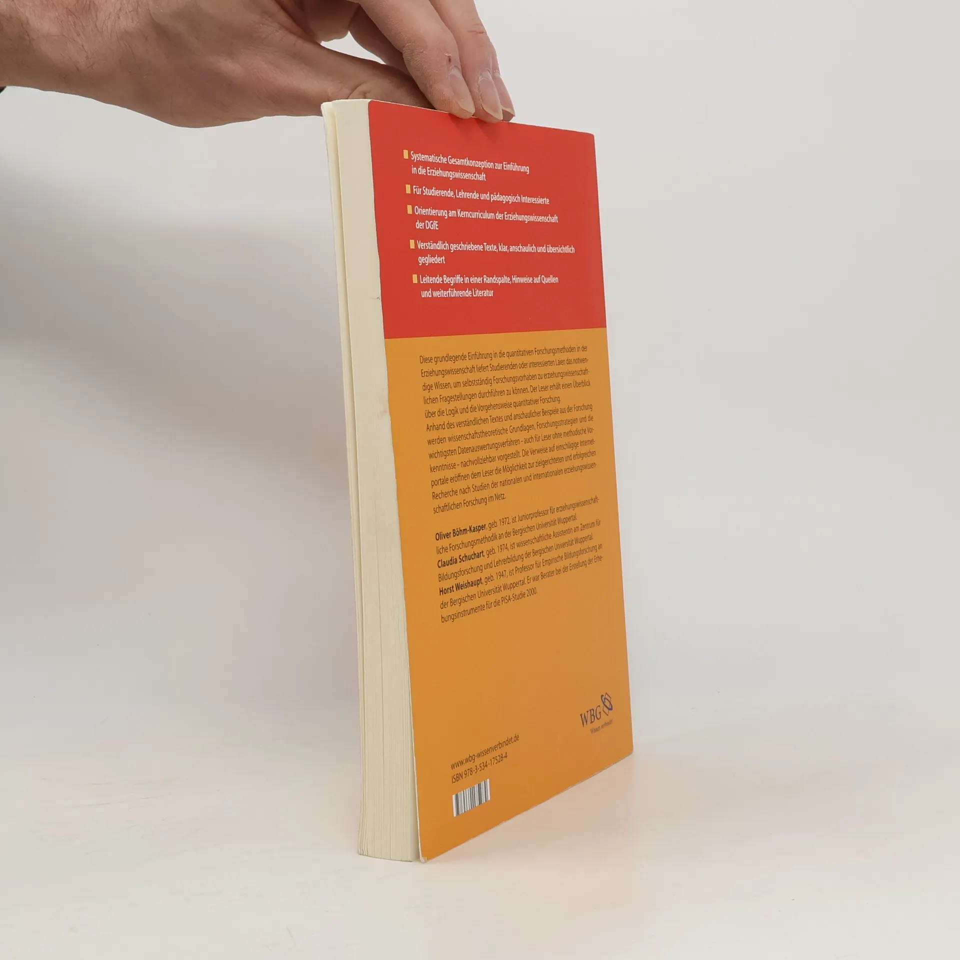 Das Buch liefert eine grundlegende Einführung in die quantitativen Forschungsmethoden. Studierende oder interessierte Laien erlangen damit das notwendige Wissen, um selbständig Forschungsvorhaben zu erziehungswissenschaftlichen Fragestellungen durchführen zu können. Als einführender Studientext bietet das Buch einen Überblick über die Logik und die Vorgehensweise quantitativer Forschung. Dabei kann es vorlesungsbegleitend oder für das individuelle Selbststudium genutzt werden. Anhand eines verständlich geschriebenen Textes und anschaulicher Beispiele aus der erziehungswissenschaftlichen Forschung werden wissenschaftstheoretische Grundlagen (z. B.: Was ist eine Theorie und wozu benötigen wir sie?), erziehungswissenschaftliche Forschungsstrategien (z. B. die Erklärung pädagogisch relevanter Sachverhalte) und die wichtigsten Datenauswertungsverfahren (z. B. die Regressionsanalyse) auch für Leser ohne methodische Vorkenntnisse nachvollziehbar vorgestellt. Die Verweise auf einschlägige Internetportale eröffnen dem Leser die Möglichkeit zur zielgerichteten und erfolgreichen Suche nach Studien der nationalen und internationalen erziehungswissenschaftlichen Forschung im Netz.