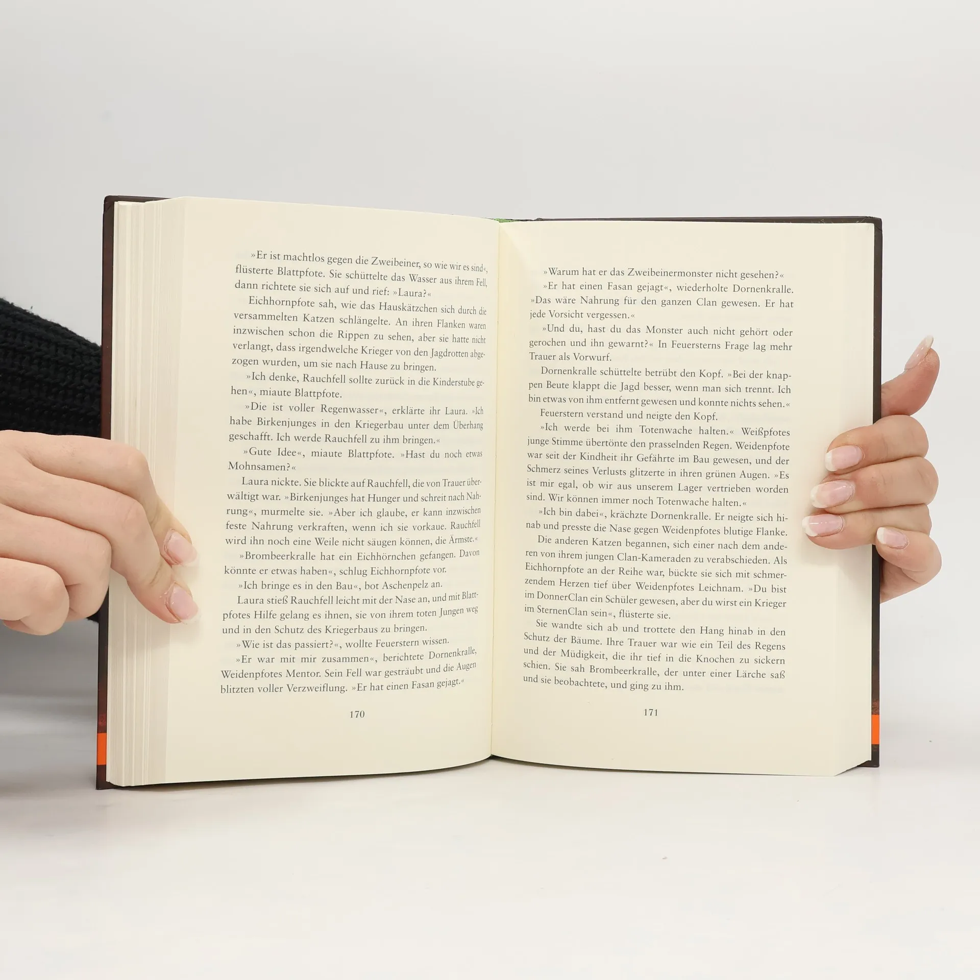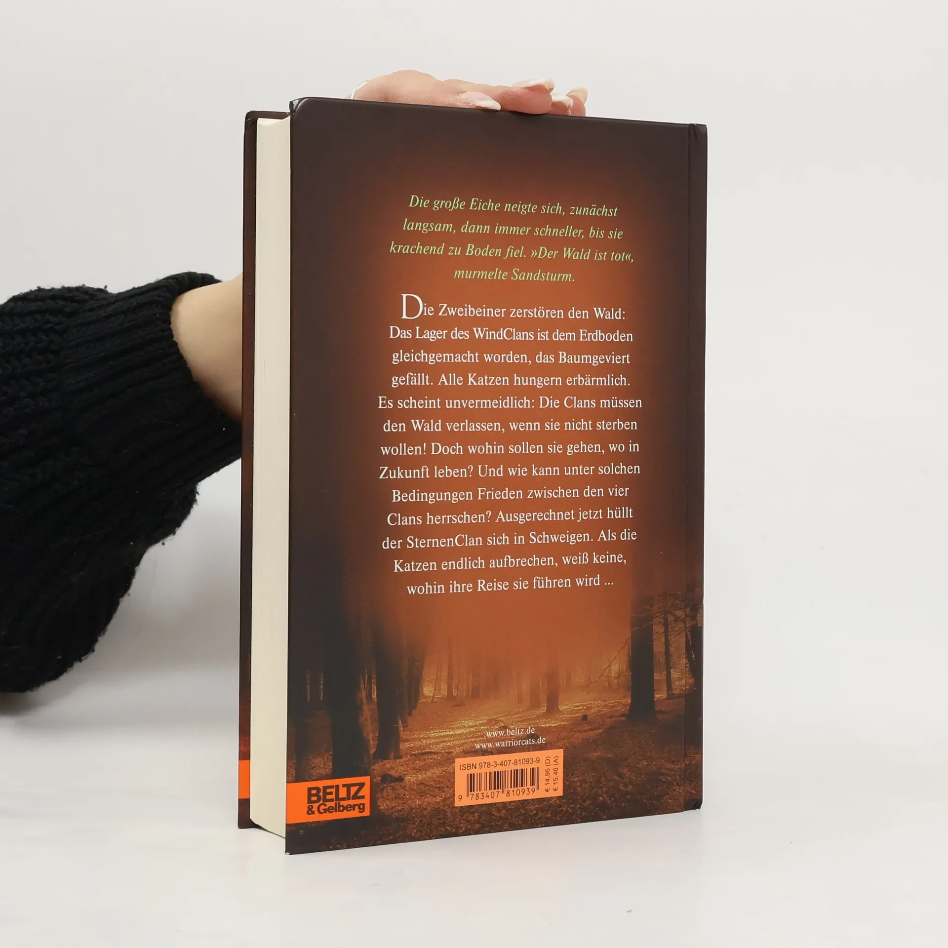 Die große Eiche neigte sich, zunächst langsam, dann immer schneller. bis sie krachend zu Boden fiel. »Der Wald ist tot«, murmelte Sandsturm. »Für keinen von uns besteht noch Hoffnung.« Die Zweibeiner zerstören den Wald: Das Lager des DonnerClans ist dem Erdboden gleichgemacht worden, das Baumgeviert, der rituelle Versammlungsort der vier Clans, gefällt. Alle Katzen hungern erbärmlich. Es scheint unvermeindlich: Die Katzen müssen den Wald verlassen, wenn sie nicht sterben wollen! Doch wohin sollen sie gehen, wo sollen sie in Zukunft leben? Und wie kann unter solchen Bedingungen Frieden zwischen den vier Clans herrschen? Ausgerechnet jetzt hüllt der SternenClan sich in Schweigen. Als die Katzen endlich aufbrechen, weiß keine, wohin ihre Reise sie führen wird ...