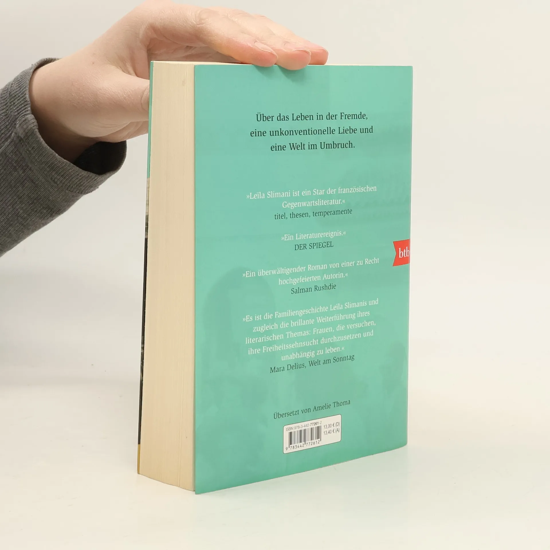 Der SPIEGEL-Bestseller des literarischen Weltstars Leïla Slimani: »Eine großartige französisch-marokkanische Familiensaga.« (Die Literarische Welt). Mathilde, eine junge Elsässerin, verliebt sich am Ende des Zweiten Weltkriegs in Amine Belhaj, einen marokkanischen Offizier im Dienst der französischen Armee. Die beiden heiraten und lassen sich in der Nähe von Meknès nieder, am Fuß des Atlas-Gebirges, auf einem abgelegenen Hof, den Amine von seinem Vater geerbt hat. Während er versucht, dem steinigen Boden einen kargen Ertrag abzutrotzen, zieht Mathilde die beiden Kinder groß. Voller Freiheitsdrang hatte sie den Aufbruch in ein neues, unbekanntes Leben gewagt und muss doch bald ernüchternde Erfahrungen machen: den alltäglichen Rassismus der französischen Kolonialgesellschaft, in der eine Ehe zwischen einem Araber und einer Französin nicht vorgesehen ist, die patriarchalischen Traditionen der Einheimischen, das Unverständnis des eigenen Mannes. Aber Mathilde gibt nicht auf. Sie kämpft um Anerkennung und ihr Leben im Land der Anderen.