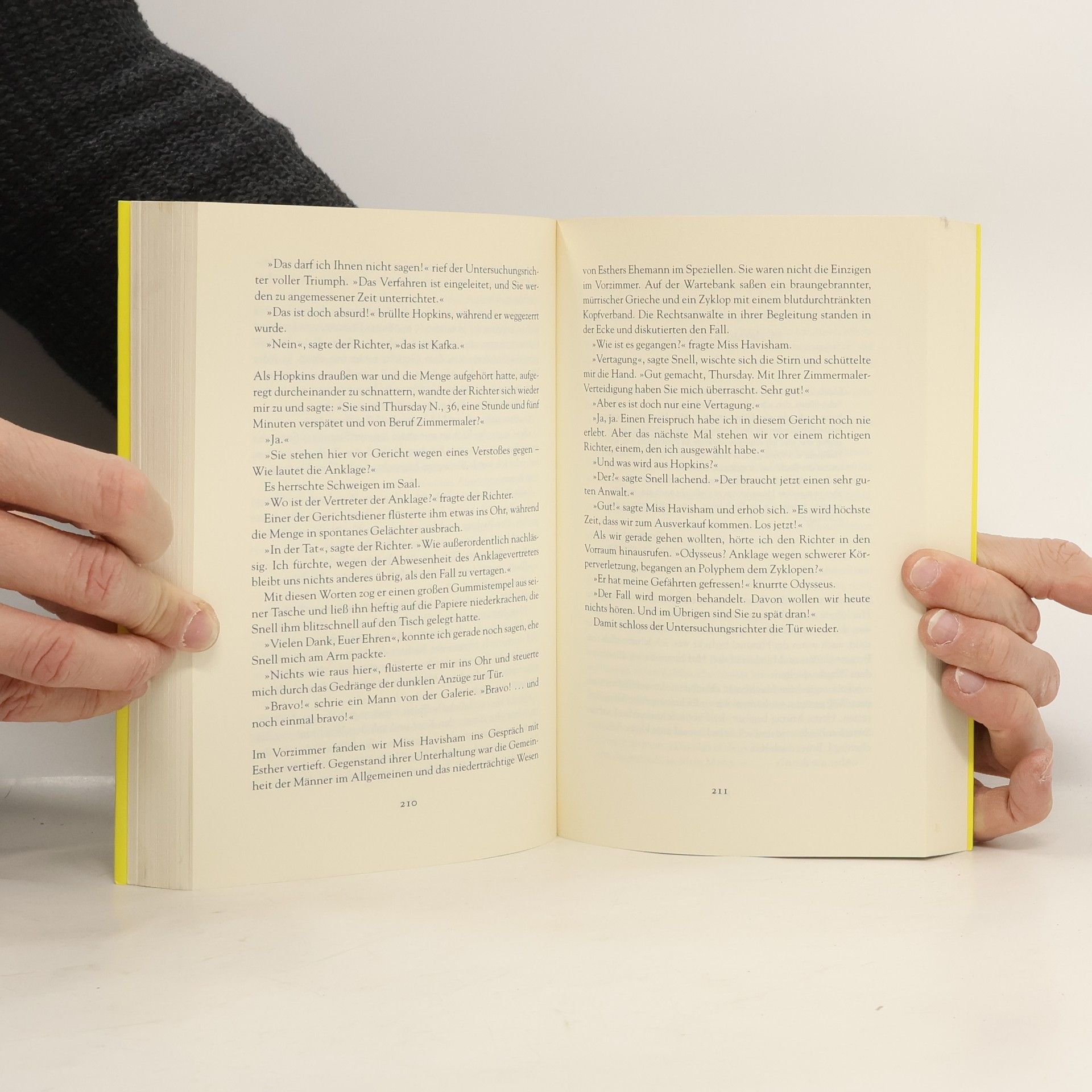 Spezialagentin Thursday Next, eben noch strahlende Heldin im Falle Jane Eyre, wird schwer in die Mangel genommen: Ihre eigene Dienststelle lässt sie beschatten, bei der Mammut-Herbstwanderung fällt ihr ein Oldtimer fast auf den Kopf, ihr Dodo legt in ihrer Küche ein Ei, der eben erst erworbene Ehemann wird von der ChronoGarde genichtet, und obendrein geht am 12. Dezember die Welt unter, wenn sie und ihr ewig zeitreisender Vater nicht herausfinden, warum sich plötzlich alles in rosa Soße verwandelt. Zum Glück findet sie in Miss Havisham eine strenge Lehrerin, die ihr zeigt, wie man sich mit Hilfe von Jurisfiction nicht nur aus einem Prozess à la Kafka, sondern auch aus einer Waschanleitung für Angorapullover befreit. »Jasper Ffordes Heldin ist in England längst Kult. Intelligenter Nonsens hoch drei - und vor allem: eine tolle Liebeserklärung an die Literatur.« MDR-Fernsehen