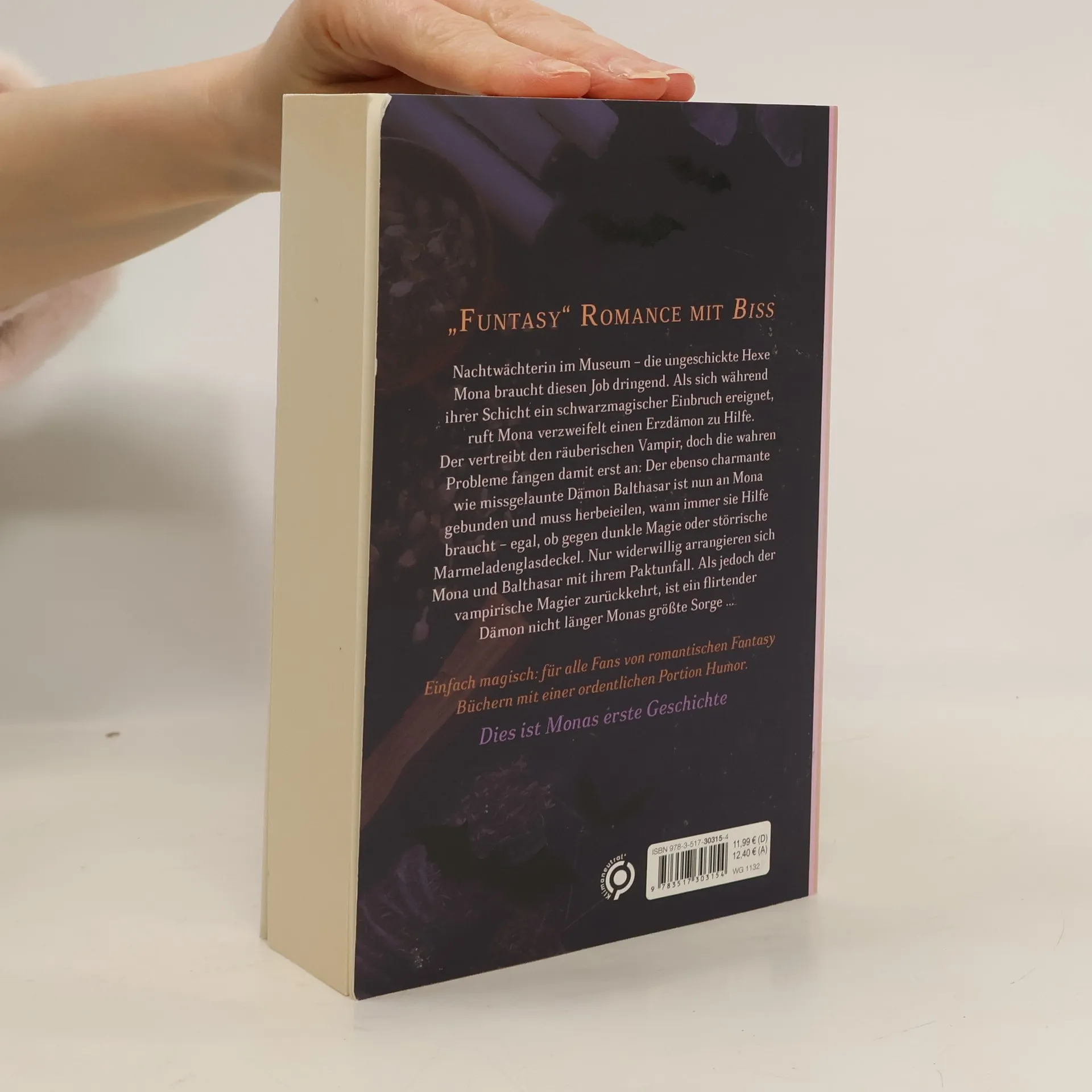 Funtasy Romance mit Biss Nachtwächterin im Museum – die ungeschickte Hexe Mona braucht diesen Job dringend. Als sich während ihrer Schicht ein schwarzmagischer Einbruch ereignet, ruft Mona verzweifelt einen Erzdämon zu Hilfe. Der vertreibt den räuberischen Vampir, doch die wahren Probleme fangen damit erst an: Der ebenso charmante wie missgelaunte Dämon Balthasar ist nun an Mona gebunden und muss herbeieilen, wann immer sie Hilfe braucht – egal, ob gegen dunkle Magie oder störrische Marmeladenglasdeckel. Nur widerwillig arrangieren sich Mona und Balthasar mit ihrem Paktunfall. Als jedoch der vampirische Magier zurückkehrt, ist ein flirtender Dämon nicht länger Monas größte Sorge …Einfach magisch: für alle Fans von romantischen Fantasy Büchern mit einer ordentlichen Portion Humor.