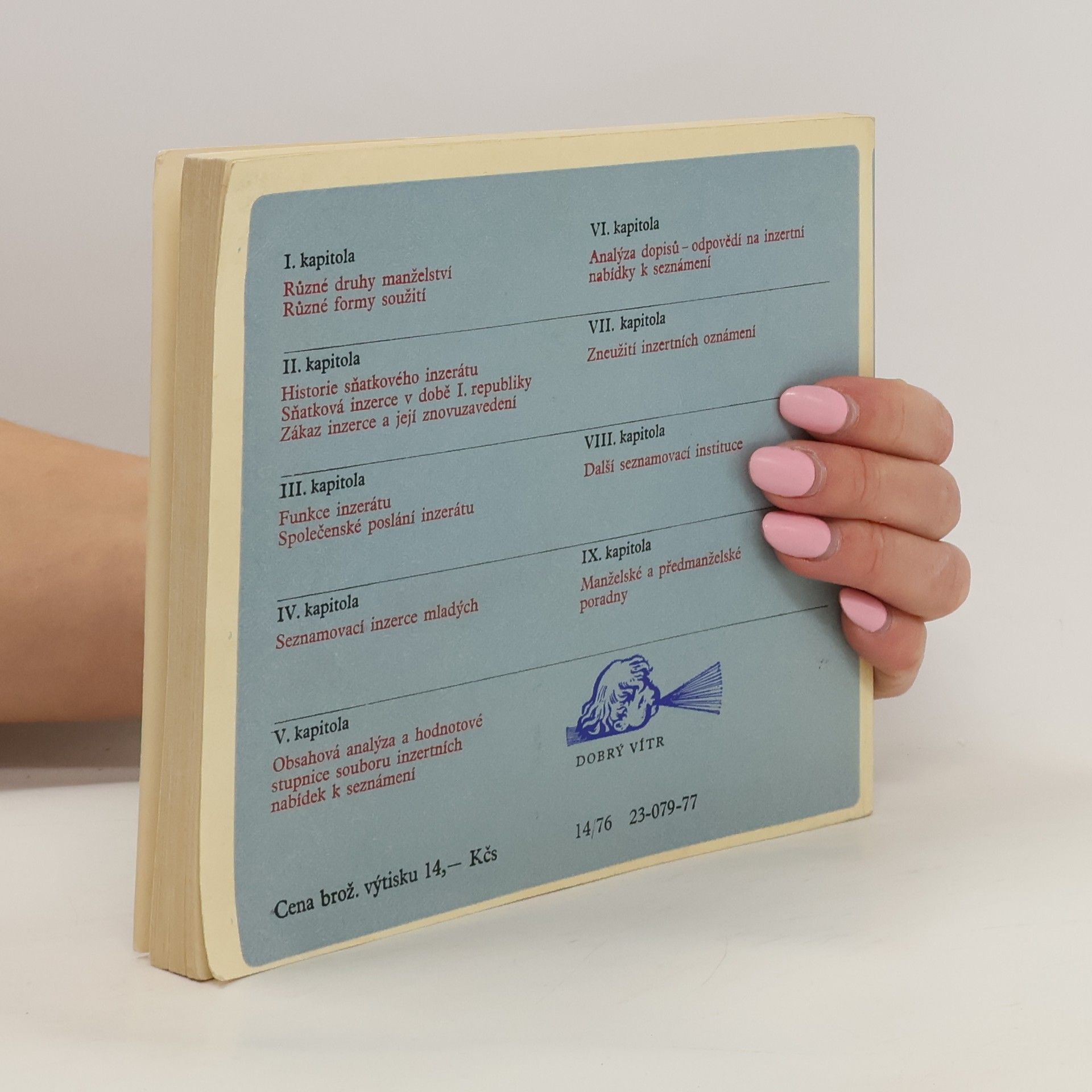 Analýza obsahu a hodnotové stupnice seznamovacích inzerátů spolu s rozborem odpovědí na uveřejněné nabídky k seznámení přispívá k složité problematice dnešního manželství. Autor pojednává o různých druzích a formách manželského soužití, shrnuje historii sňatkového inzerátu, jehofunkci a společenské poslání. Upozorňuje na možnost zneužití inzerátů, na další seznamovací instituce a význam manželských a předmanželských poraden.