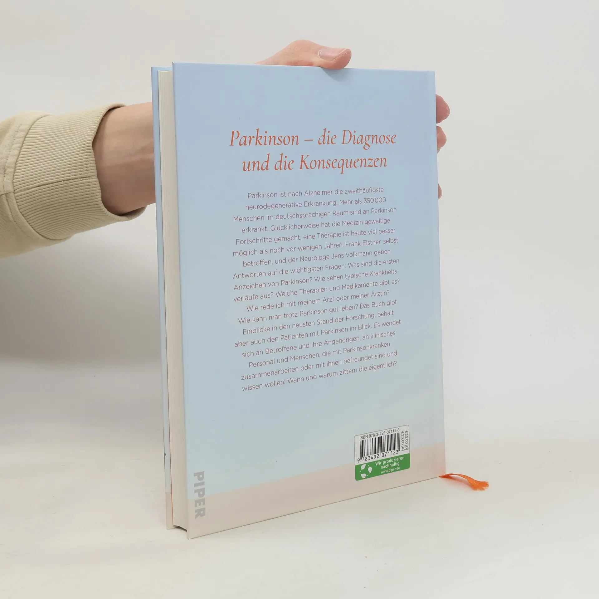 Leben mit Parkinson Parkinson ist nach Alzheimer die zweithäufigste neurodegenerative Erkrankung. Mehr als 350.000 Menschen im deutschsprachigen Raum sind an Parkinson erkrankt. Doch die Medizin hat gewaltige Fortschritte gemacht, eine Therapie ist heute viel besser möglich als noch vor wenigen Jahren. Frank Elstner, selbst betroffen, und der Neurologe Jens Volkmann geben Antworten auf die wichtigsten Fragen: - Was sind die ersten Anzeichen von Parkinson? - Wie ist der Krankheitsverlauf? - Welche Therapien und Medikamente gibt es? - Wie rede ich mit meinem Arzt? - Wie kann man trotz Parkinson gut leben? Das Buch gibt Einblicke in den neusten Stand der Forschung, behält aber auch den Menschen mit Parkinson im Blick. Es wendet sich an Betroffene und ihre Angehörigen.