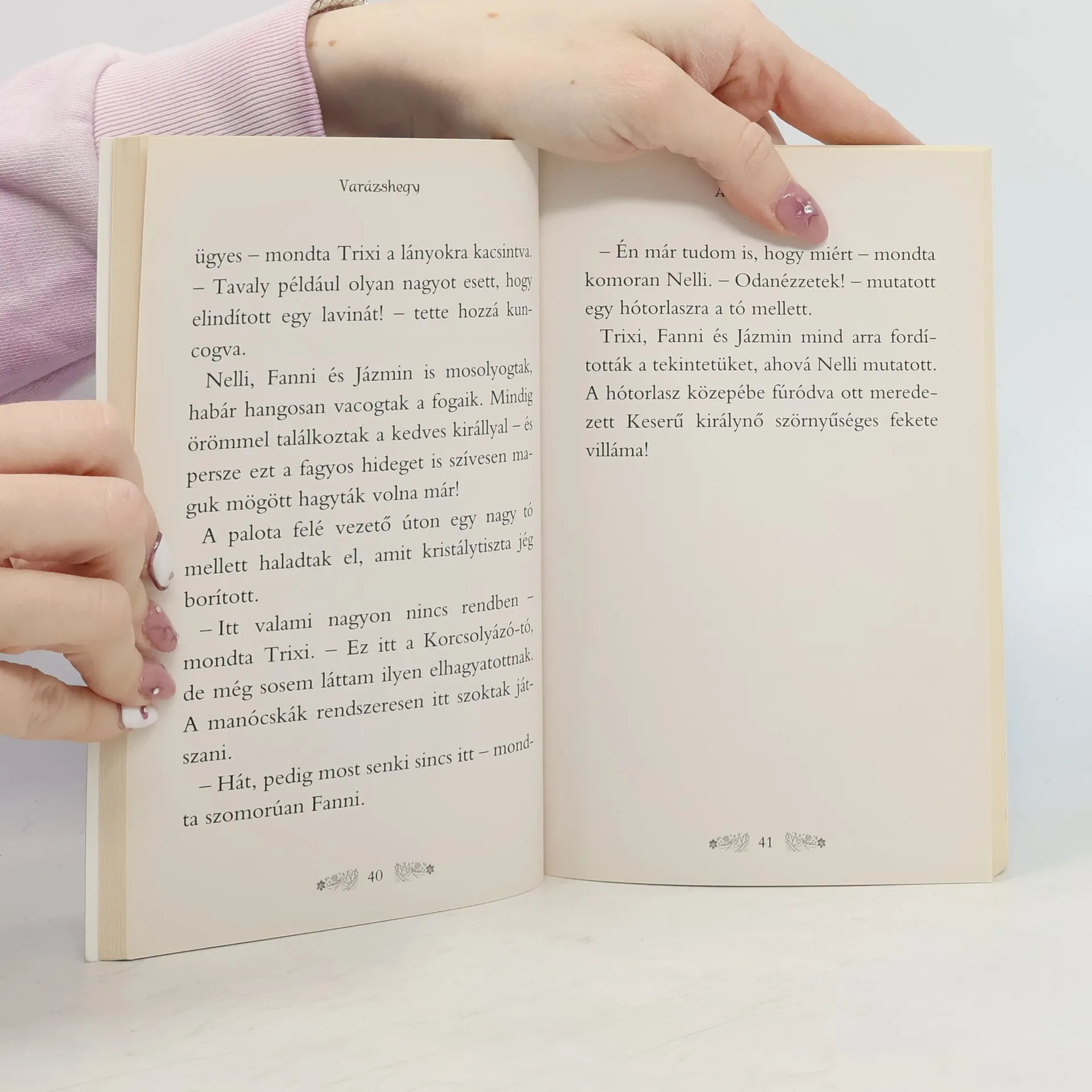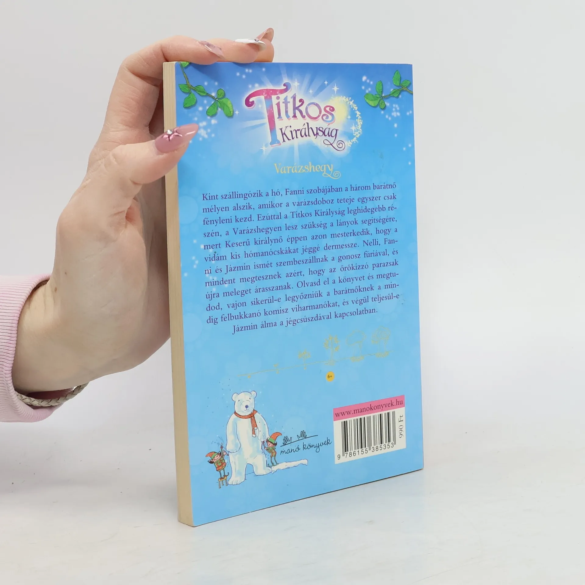 Kint szállingózik a hó, Fanni szobájában a három barátnő mélyen alszik, amikor a varázsdoboz teteje egyszer csak fényleni kezd. Ezúttal a Titkos Királyság leghidegebb részén, a Varázshegyen lesz szükség a lányok segítségére, mert Keserű királynő éppen azon mesterkedik, hogy a vidám kis hómanócskákat jéggé dermessze. Nelli, Fanni és Jázmin ismét szembeszállnak a gonosz fúriával, és mindent megtesznek azért, hogy az örökizzó parazsak újra meleget árasszanak. Olvasd el a könyvet és megtudod, vajon sikerül-e legyőzniük a barátnőknek a mindig felbukkanó komisz viharmanókat, és végül teljesül-e Jázmin álma a jégcsúszdával kapcsolatban.