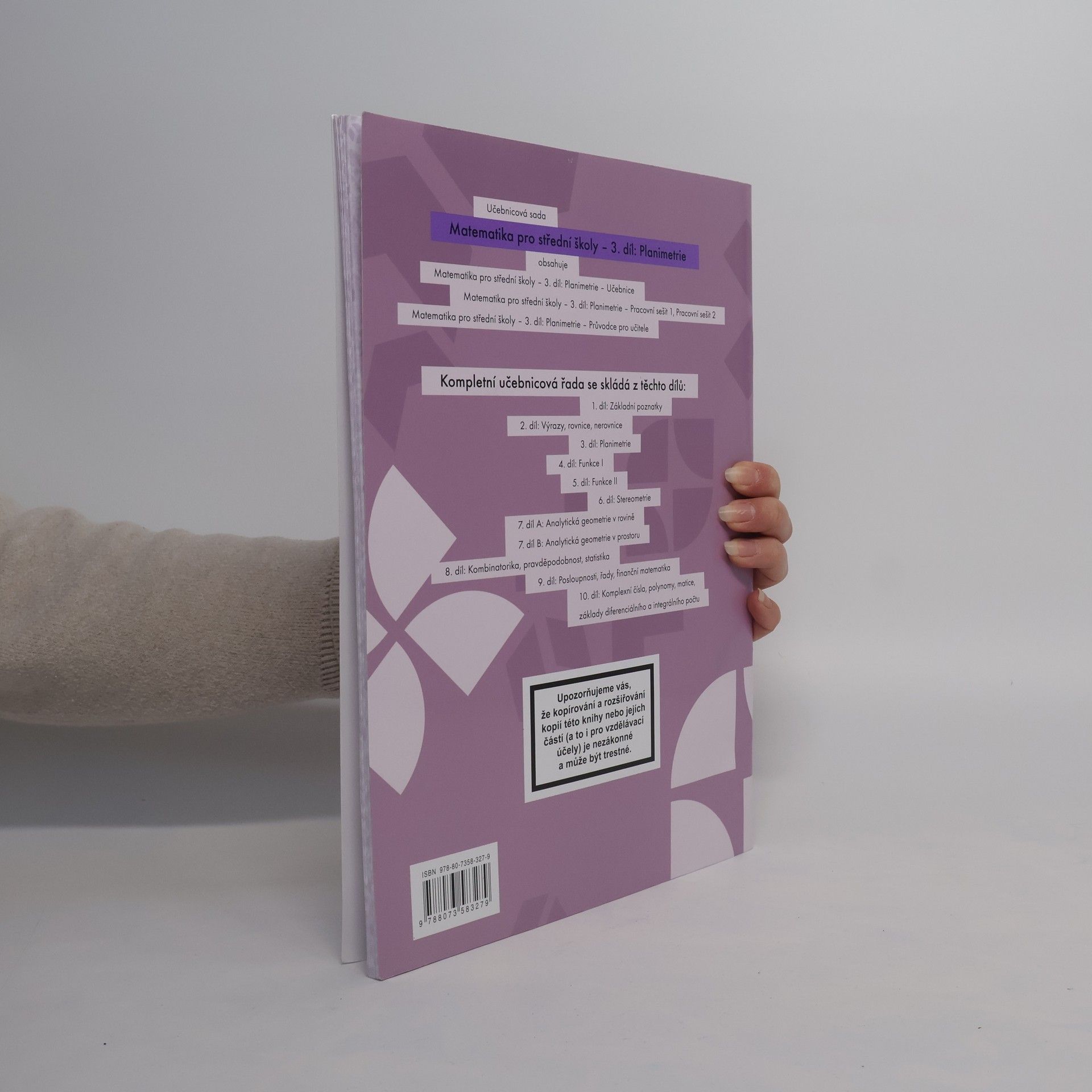 Pracovní sešit - každé kapitole v učebnici odpovídá příslušná kapitola v pracovním sešitě. Ke každému tématu náleží tři úrovně úkolů seřazených podle Bloomovy taxonomie vzdělávacích cílů. V rámci jednotlivých úrovní zároveň postupně roste obtížnost zadaných cvičení, čímž je umožněno dosáhnout úspěchu všem studentům. Různorodostí úloh a snahou o propojení matematiky s praxí přispívá pracovní sešit ke zvýšenému zájmu studentů o vyučovaný předmět a zvyšuje tak jejich motivaci ke studiu.