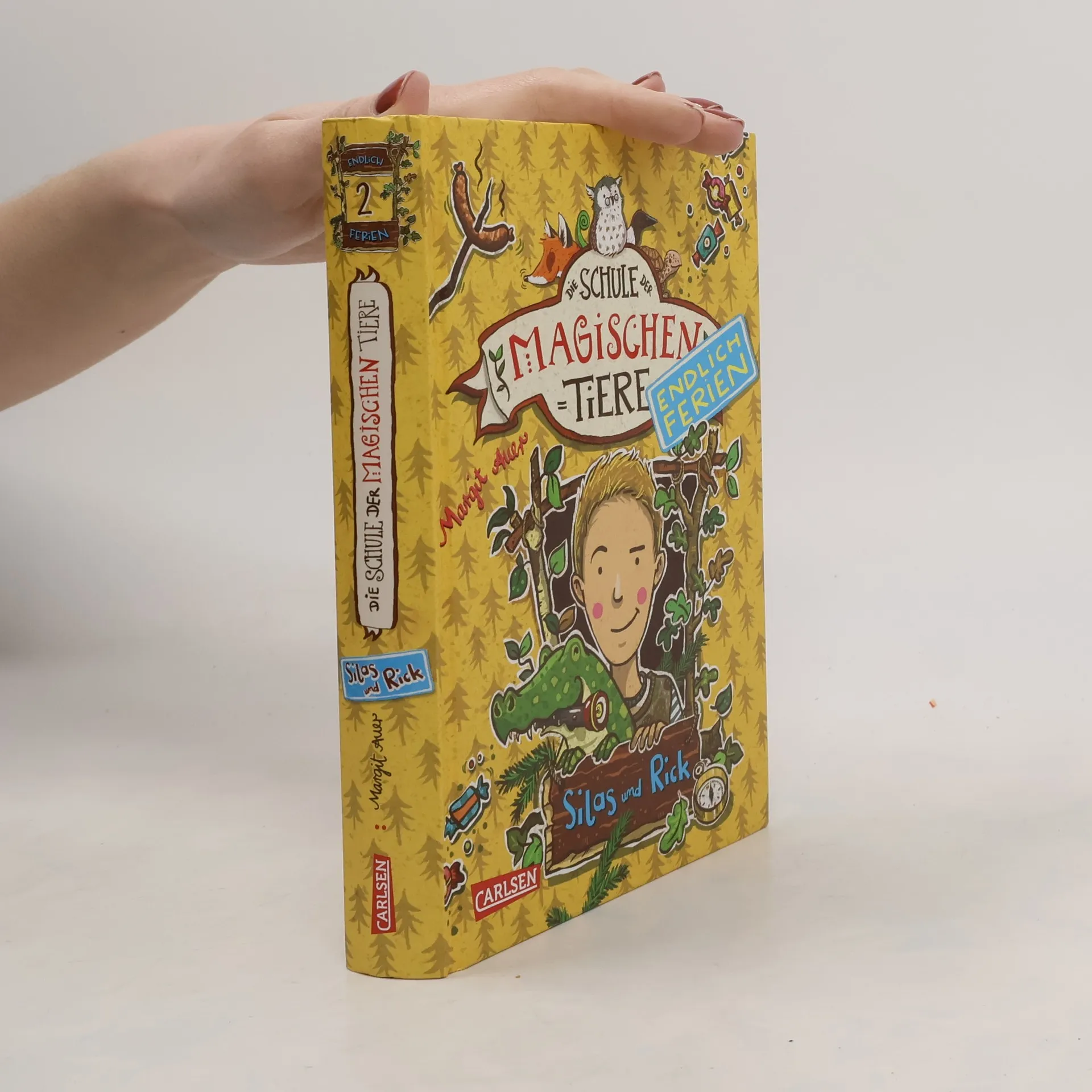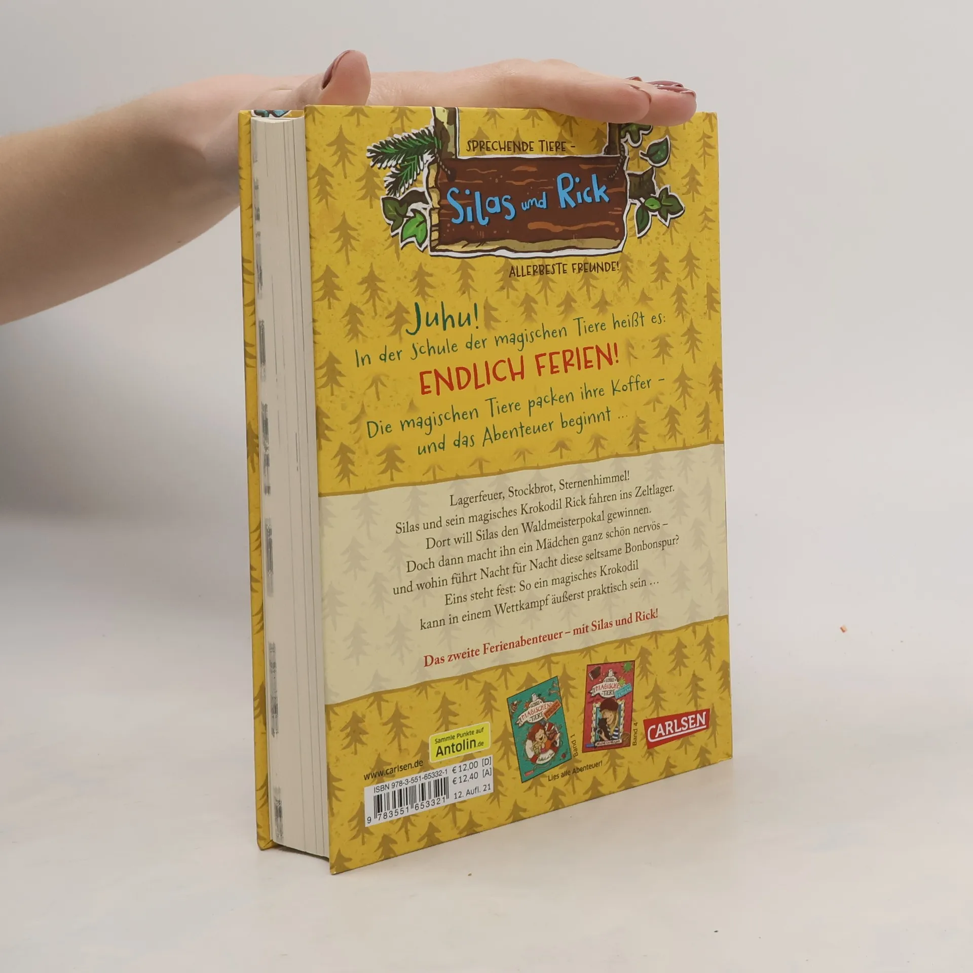 Jetzt kostenlos herunterladen – die App zur Serie! *** Auf in die Ferien - mit einem magischen, sprechenden Tier! BAND 2: Lagerfeuer, Stockbrot, Sternenhimmel! Silas und sein magisches Krokodil Rick fahren ins Zeltlager. Dort will Silas den Waldmeisterpokal gewinnen. Doch dann macht ihn ein Mädchen ganz schön nervös – und wohin führt Nacht für Nacht diese seltsame Bonbonspur? Eins steht fest: So ein magisches Krokodil kann in einem Wettkampf äußerst praktisch sein … DIE SCHULE DER MAGISCHEN TIERE - Endlich Ferien: In der Schule der magischen Tiere heißt es: Endlich Ferien! Die magischen Tiere packen ihre Koffer – und das Abenteuer beginnt … Ein neuer spannender Ferienkrimi in kurzen Kapiteln - mit echtem magischem Tier. Viel Spaß mit dem zweiten Ferienabenteuer der Bestseller-Reihe!
