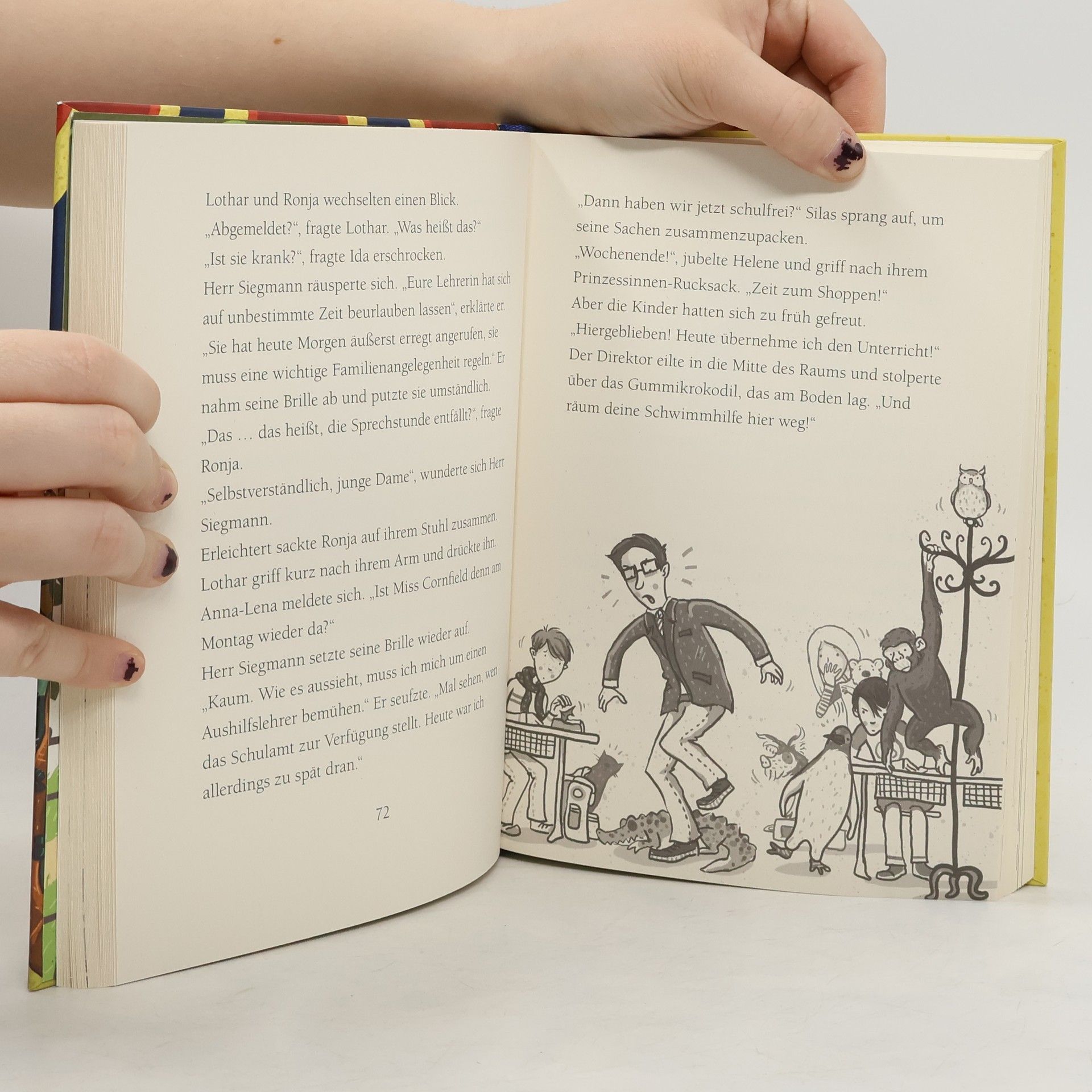 Jetzt kostenlos herunterladen – die App zur Serie! *** Wer in der Klasse wird heute ein magisches, sprechendes Tier erhalten? *** Juhu! Nachricht von Mr. Morrison, dem Inhaber der magischen Zoohandlung: Ronja und Lothar sind die Nächsten, die ein magisches Tier erhalten. Doch plötzlich ist Mr. Morrison einfach verschwunden. Und dann ist auch noch Miss Cornfield weg – stattdessen kommt ein fieser Vertretungslehrer in die Klasse. Was ist hier bloß los? Rabbat, der Fuchs, bringt es auf den Punkt: Sie müssen etwas unternehmen! *** DIE SCHULE DER MAGISCHEN TIERE Band 7: Diese Schule birgt ein Geheimnis: Wer Glück hat, findet hier den besten Freund, den es auf der Welt gibt. Ein magisches Tier. Ein Tier, das sprechen kann. Wenn es zu dir gehört ... *** Viele Bilder, viele kurze Kapitel, viel Lesespaß! Der siebte Band der beliebten Bestseller-Reihe!