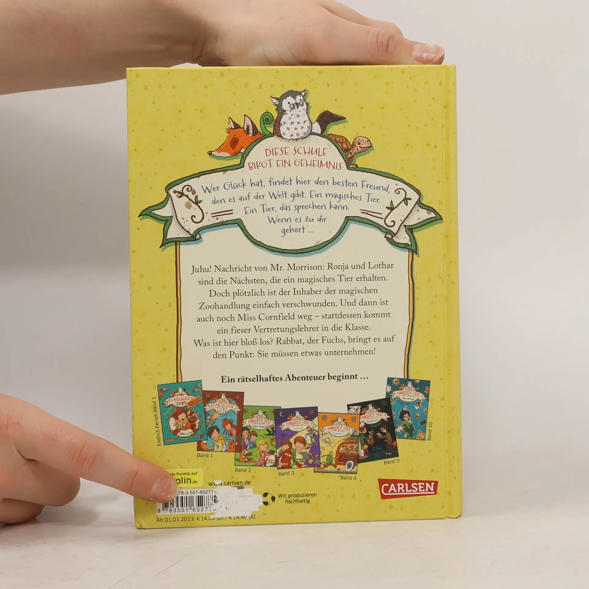 Jetzt kostenlos herunterladen – die App zur Serie! *** Wer in der Klasse wird heute ein magisches, sprechendes Tier erhalten? *** Juhu! Nachricht von Mr. Morrison, dem Inhaber der magischen Zoohandlung: Ronja und Lothar sind die Nächsten, die ein magisches Tier erhalten. Doch plötzlich ist Mr. Morrison einfach verschwunden. Und dann ist auch noch Miss Cornfield weg – stattdessen kommt ein fieser Vertretungslehrer in die Klasse. Was ist hier bloß los? Rabbat, der Fuchs, bringt es auf den Punkt: Sie müssen etwas unternehmen! *** DIE SCHULE DER MAGISCHEN TIERE Band 7: Diese Schule birgt ein Geheimnis: Wer Glück hat, findet hier den besten Freund, den es auf der Welt gibt. Ein magisches Tier. Ein Tier, das sprechen kann. Wenn es zu dir gehört ... *** Viele Bilder, viele kurze Kapitel, viel Lesespaß! Der siebte Band der beliebten Bestseller-Reihe!