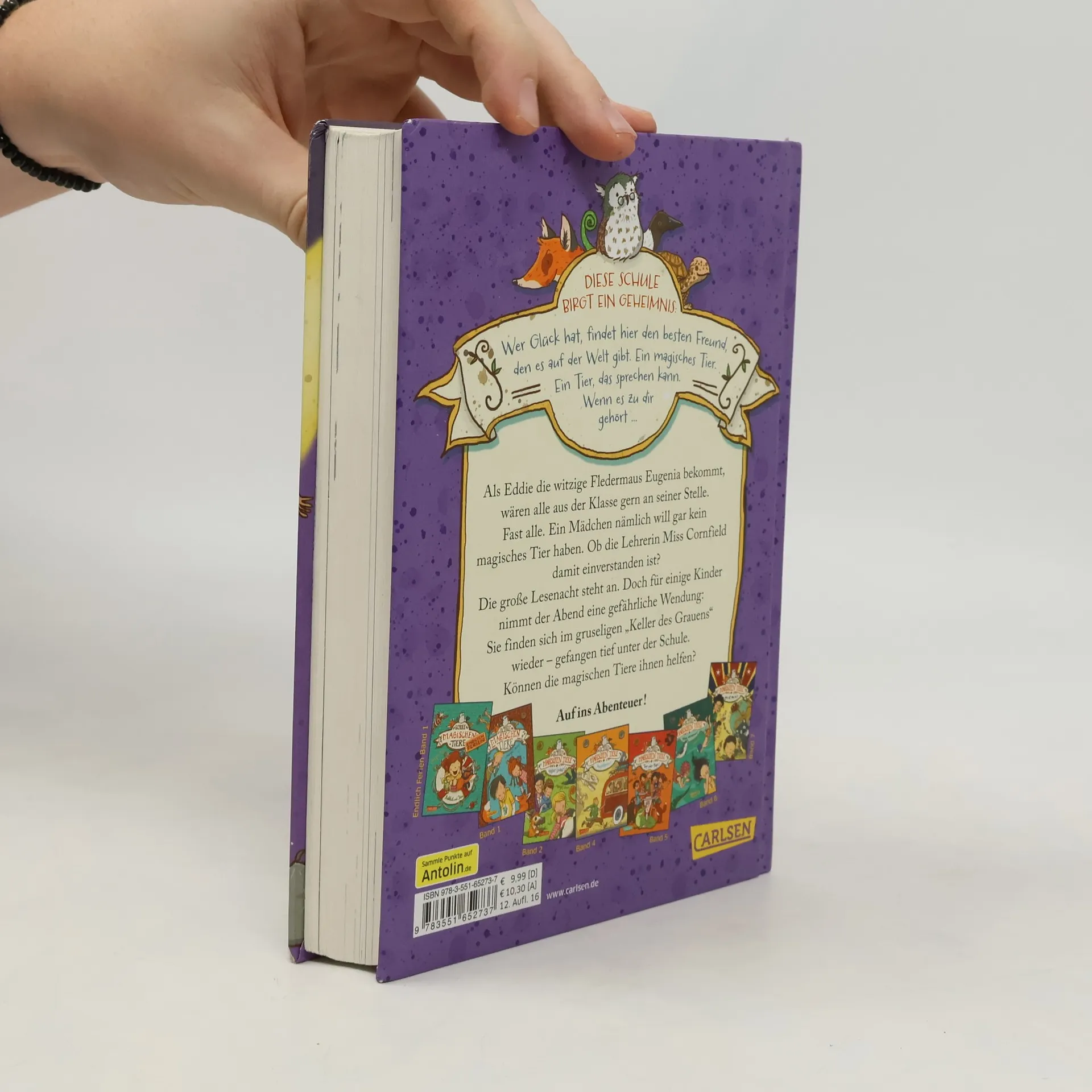 Jetzt kostenlos herunterladen – die App zur Serie! *** Wer in der Klasse wird heute ein magisches, sprechendes Tier erhalten? *** BAND 3: Als Eddie die witzige Fledermaus Eugenia bekommt, wären alle aus der Klasse gern an seiner Stelle. Fast alle. Ein Mädchen nämlich will gar kein magisches Tier haben. Ob die Lehrerin Miss Cornfield damit einverstanden ist? Die große Lesenacht steht an. Doch für einige Kinder nimmt der Abend eine gefährliche Wendung: Sie finden sich im gruseligen „Keller des Grauens“ wieder – gefangen tief unter der Schule. Können die magischen Tiere ihnen helfen? *** DIE SCHULE DER MAGISCHEN TIERE: Diese Schule birgt ein Geheimnis: Wer Glück hat, findet hier den besten Freund, den es auf der Welt gibt. Ein magisches Tier. Ein Tier, das sprechen kann. Wenn es zu dir gehört ...*** Viele Bilder, viele kurze Kapitel, viel Lesespaß! Der dritte Band der beliebten Bestseller-Reihe!