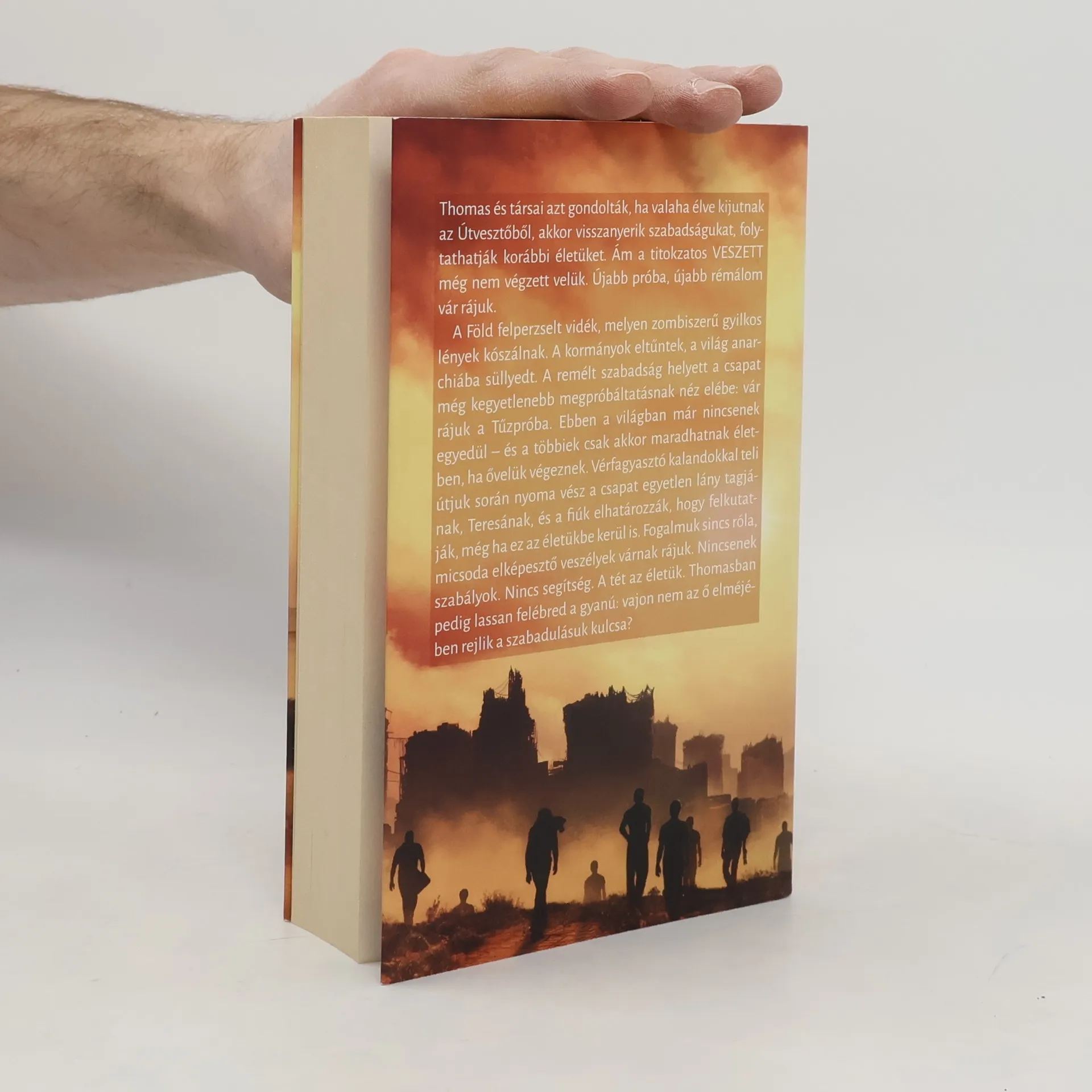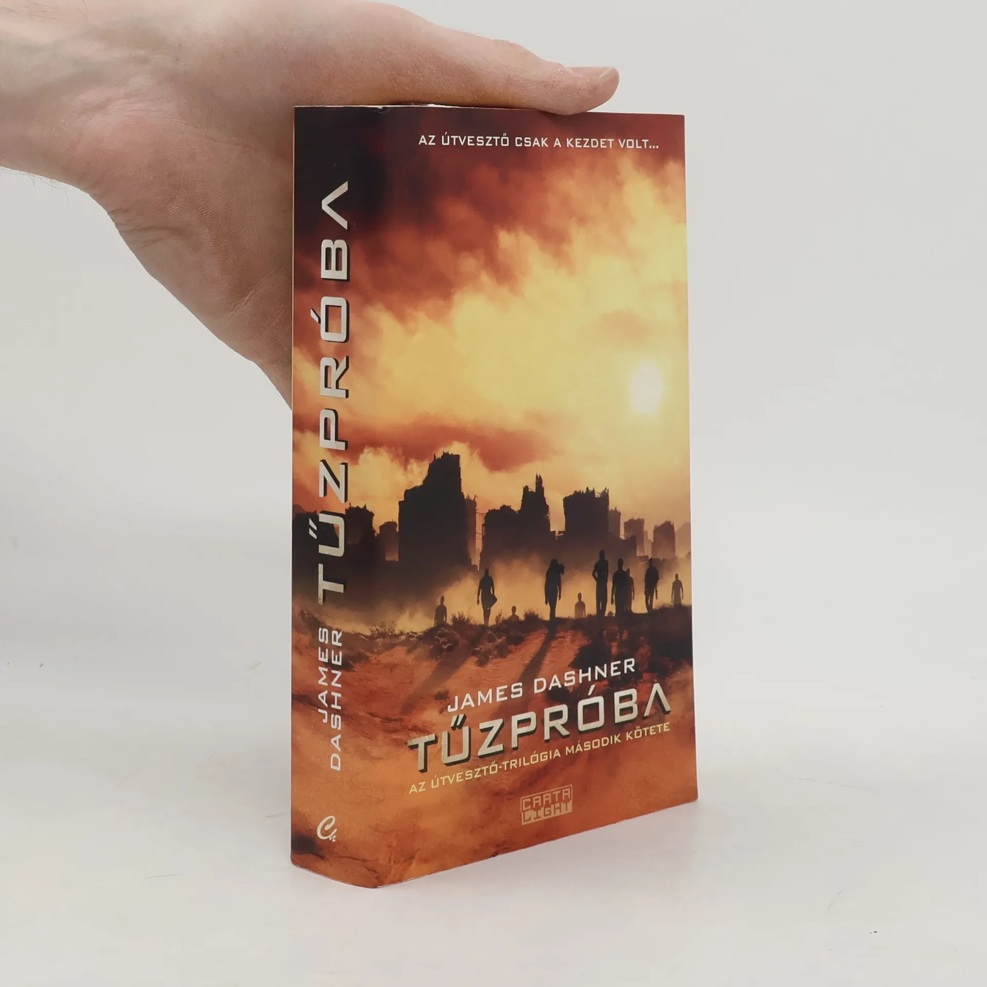 Az Útvesztő-sorozat második kötete. Már a sorozat nyitókötetében sem volt éppen leányálom a rejtélyes Próbák első szakasza a gyilkos Útvesztőben. A Tisztás túlélői most újabb titokzatos kalandnak, még kegyetlenebb kísérletnek néznek elébe: vár rájuk a Tűzpróba. Az Útvesztő ugyancsak szenzációs bestsellerré lett folytatásában Thomasra és társaira újabb vérfagyasztó megpróbáltatások várnak. A Föld felszínét hatalmas napkitörések jórészt felperzselték, az emberiséget megtizedelte egy halálos vírus. A fiatalok megtudják, hogy ők is megfertőződtek, ám ha kiállnak egy újabb Próbát, meggyógyulhatnak. Kalandos útjuk során nyoma vész a csapat egyetlen lány tagjának, Teresának, és a fiúk elhatározzák, hogy felkutatják, még ha ez az életükbe kerül is. Halvány fogalmuk sincs róla, micsoda elképesztő veszélyek várnak rájuk... James Dashner, a világszerte óriási sikert aratott Útvesztő-sorozat szerzője az egyik legnépszerűbb amerikai ifjúsági író. A trilógiának szánt sorozat köteteinek száma utóbb négyre nőtt, ahogy a Sziklás-hegységben élő szerző gyermekeinek száma is. Az Útvesztő és folytatása, a Tűzpróba írója amúgy nem nagy barátja a számoknak, pedig eredetileg könyvelőként dolgozott. Most viszont rendkívül hálás azért, hogy történetek írásából élhet, és úgy tartja, nála nagyobb mázlista kevés van a világon.