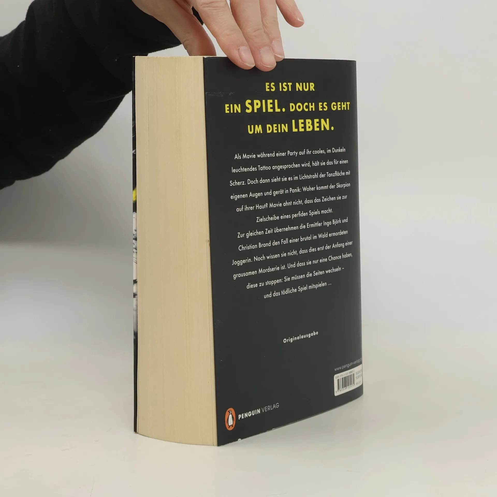 Sie jagen dich. Sie töten dich. Als Mavie während einer Party auf ihr cooles, im Dunkeln leuchtendes Tattoo angesprochen wird, hält sie das für einen Scherz. Doch dann sieht sie es im Lichtstrahl der Tanzfläche mit eigenen Augen und gerät in Panik: Woher kommt der Skorpion auf ihrer Haut? Mavie ahnt nicht, dass das Zeichen sie zur Zielscheibe eines perfiden Spiels macht. Zur gleichen Zeit übernehmen die Ermittler Inga Björk und Christian Brand den Fall einer brutal im Wald ermordeten Joggerin. Noch wissen sie nicht, dass dies erst der Anfang einer grausamen Mordserie ist. Und dass sie nur eine Chance haben, diese zu stoppen: Sie müssen die Seiten wechseln – und das tödliche Spiel mitspielen …