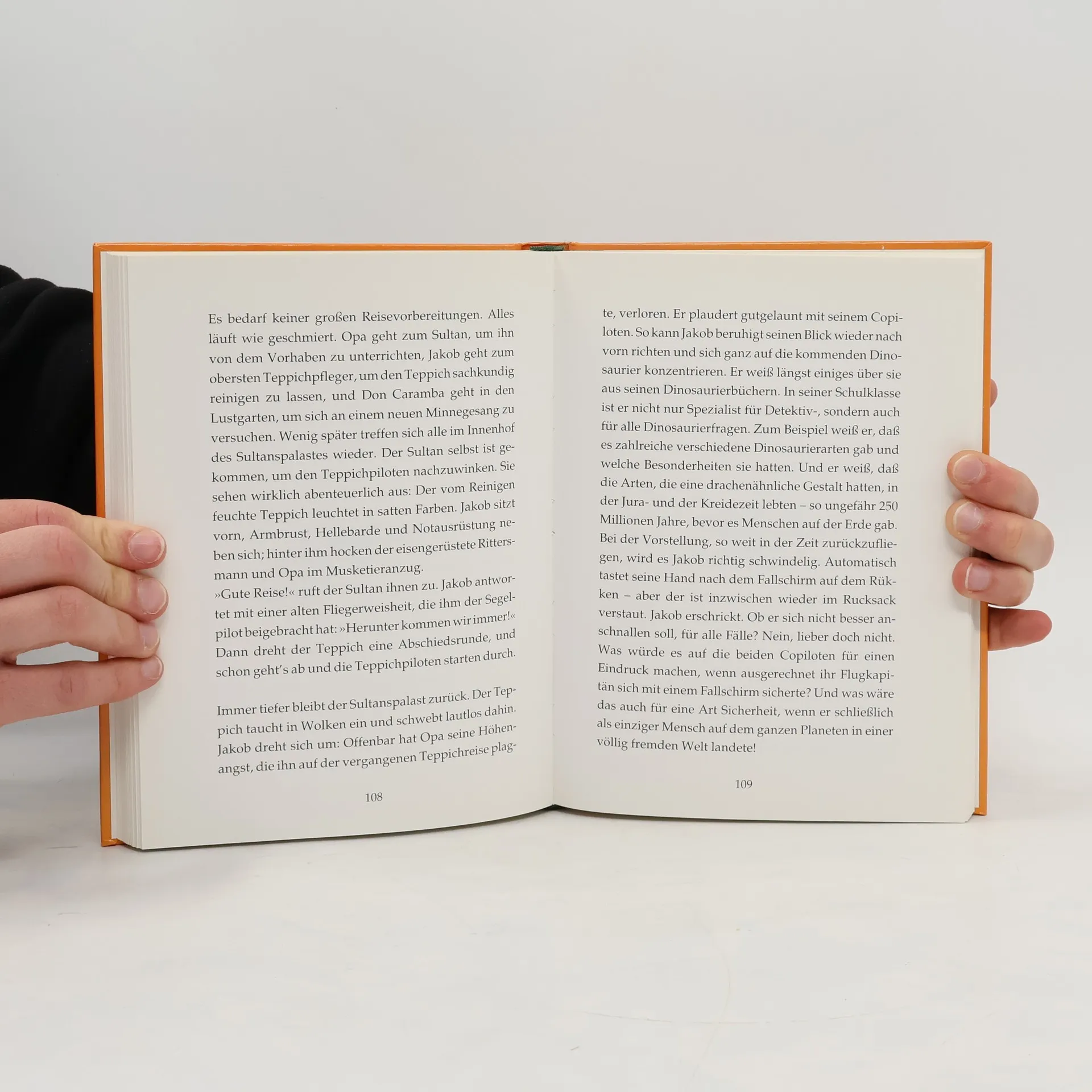 Jakob unternimmt eine abenteuerliche Reise auf einem fliegenden Teppich. Er möchte seinen Opa besuchen, der sich im Orient aufhält. Unterwegs trifft er auf einen bösen Vulkandämon und macht Bekanntschaft mit einem mittelalterlichen Ritter, der nicht nur tapfer, sondern auch künstlerisch veranlagt ist und sich unsterblich verliebt hat . . . Die Reise wird zu einem aufregenden Ausflug durch vergangene Zeiten und ferne Länder.