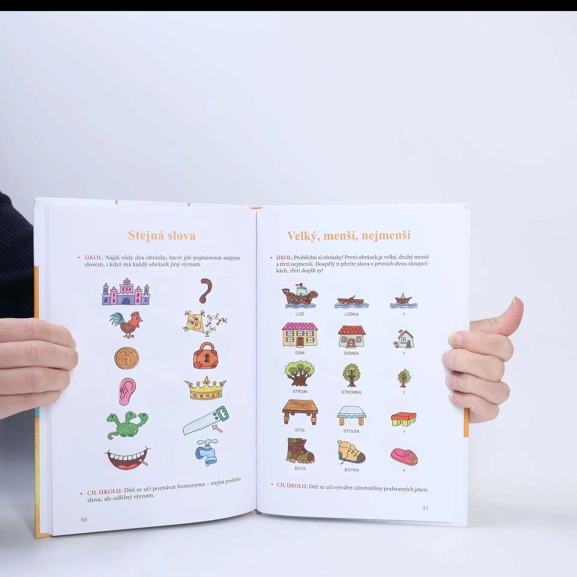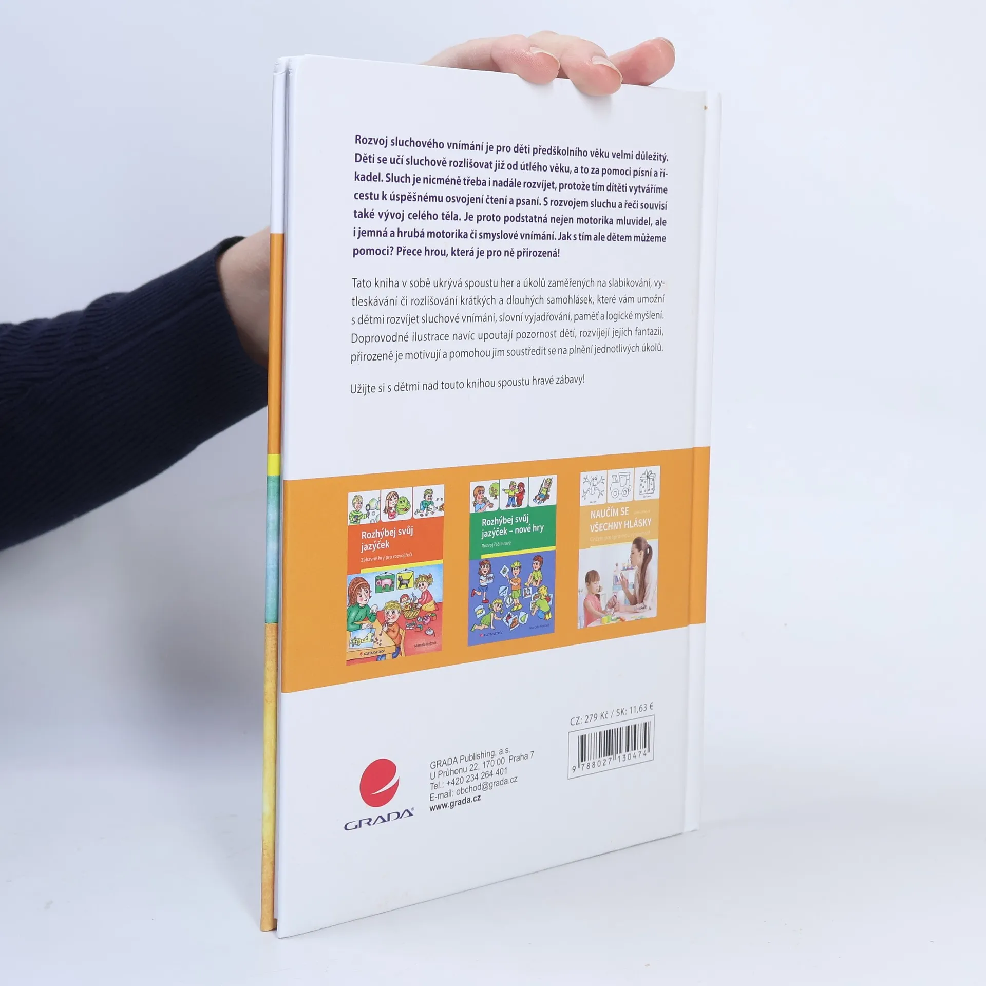 Tato kniha v sobě ukrývá spoustu her a úkolů zaměřených na slabikování, vytleskávání či rozlišování krátkých a dlouhých samohlásek, které vám umožní s dětmi rozvíjet sluchové vnímání, slovní vyjadřování, paměť a logické myšlení. Doprovodné ilustrace navíc upoutají pozornost dětí, rozvíjejí jejich fantazii, přirozeně je motivují a pomohou jim soustředit se na plnění jednotlivých úkolů.