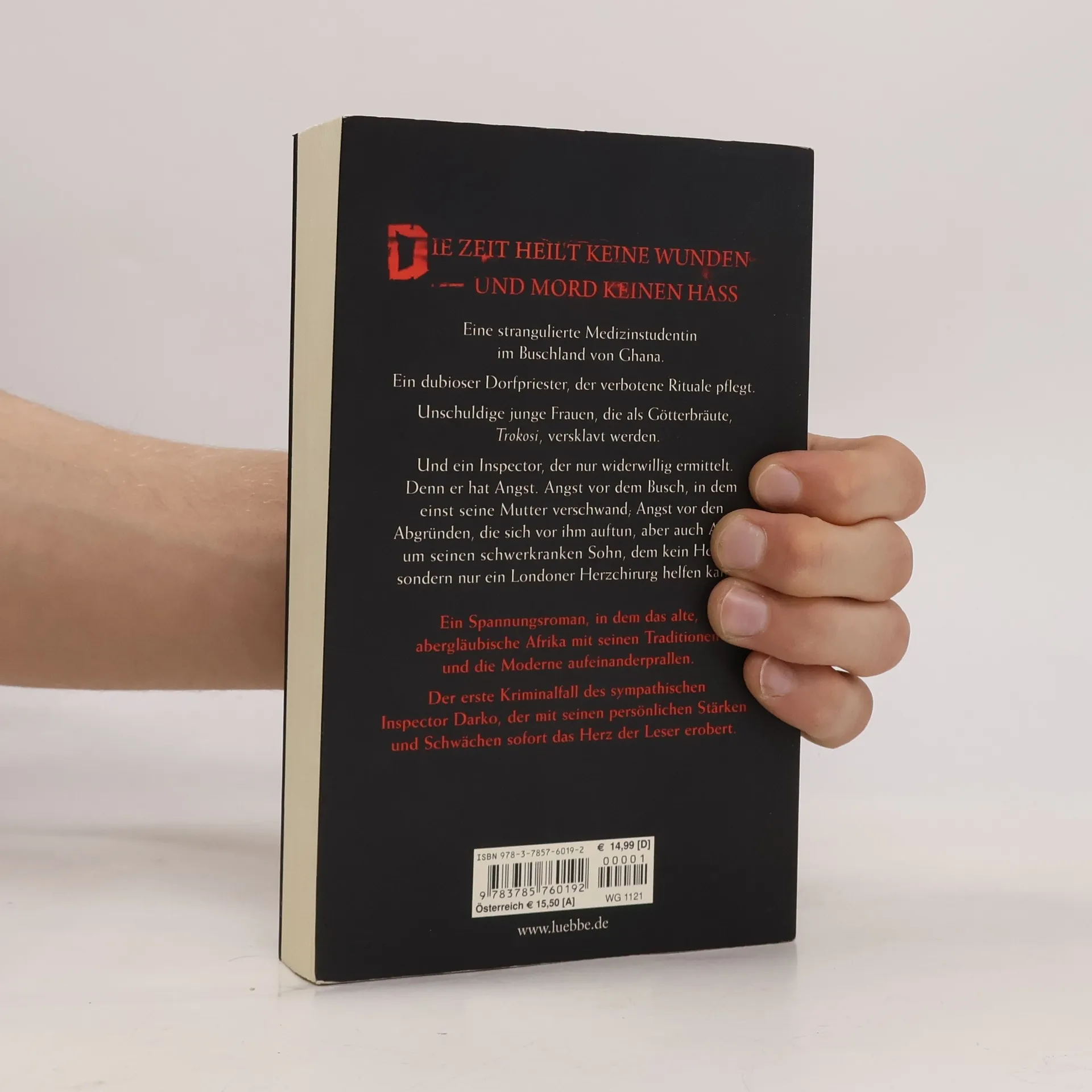 Eine strangulierte Medizinstudentin im Buschland von Ghana. Ein dubioser Dorfpriester, der verbotene Rituale pflegt. Unschuldige junge Frauen, die als Götterbräute, Trokosi, versklavt werden. Und ein Inspector, der nur widerwillig ermittelt. Denn er hat Angst. Angst vor dem Busch, in dem einst seine Mutter verschwand; Angst vor den Abgründen, die sich vor ihm auftun, aber auch Angst um seinen schwerkranken Sohn, dem kein Heiler, sondern nur ein Londoner Herzchirurg helfen kann. Ein Spannungsroman, in dem das alte, abergläubische Afrika mit seinen Traditionen und das moderne Afrika aufeinanderprallen. Ein Kriminalfall mit einem sehr sympathischen Ermittler, der mit seinen persönlichen Problemen sofort das Herz der Leser erobert.