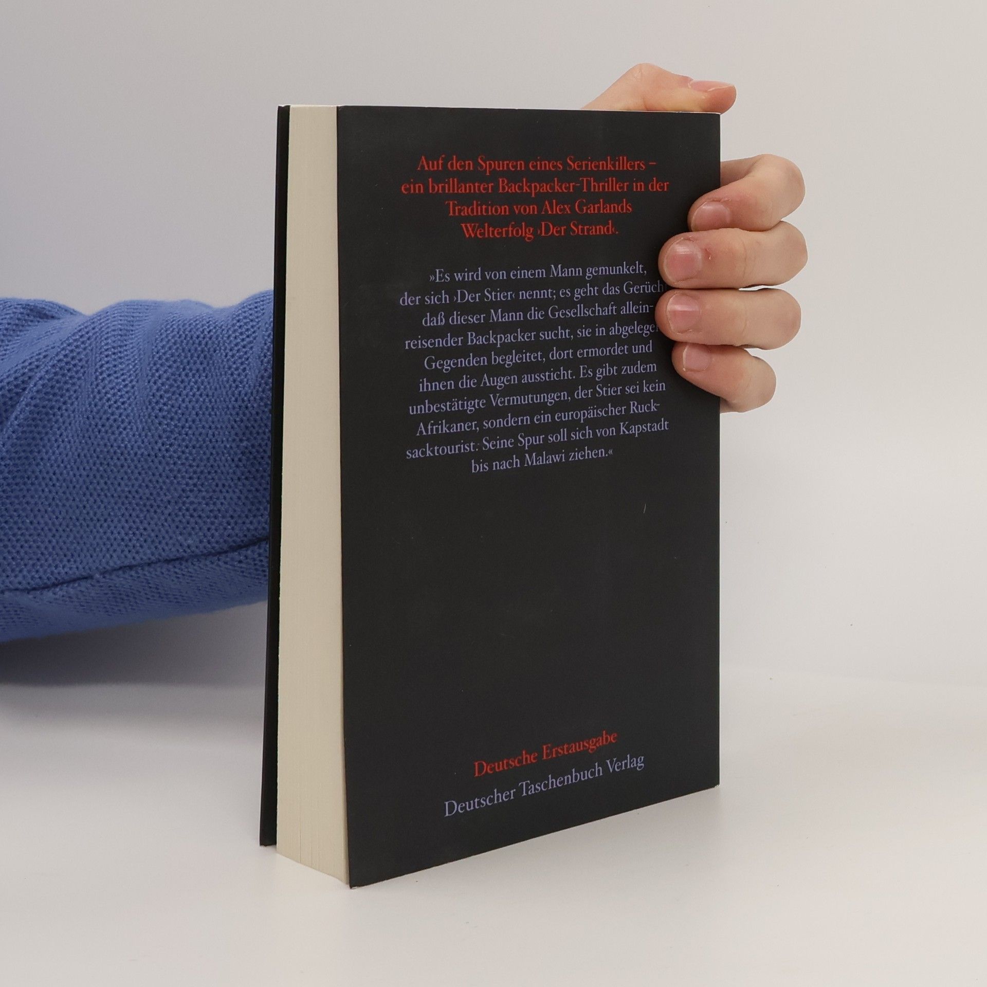 Spannender Thriller um einen Rucksack-Touristen, der einem Serienkiller auf der Spur ist. Für alle, die Alex Garlands ›Der Strand‹ verschlungen haben. In einem verlassenen Dorf am Annapurna-Massiv in Nepal entdeckt Paul Wood die Leiche eines ermordeten Trekkers, der obendrein brutal entstellt wurde: Aus den Augen des Toten ragen zwei Schweizer Armeemesser. Die nepalesische Polizei ist an der Aufklärung des Falls nicht interessiert, da man andere Touristen nicht verschrecken will. Doch für Paul stellt die Entdeckung des Toten ein grauenhaftes Déjà-vu dar: Vor zwei Jahren wurde seine Freundin Laura während einer Backpacker-Expedition in Kamerun auf exakt dieselbe Weise umgebracht. Aber was haben zwei Morde miteinander zu tun, die auf verschiedenen Kontinenten verübt wurden? Über ein Internet-Forum informiert Paul andere Backpacker über den Fall – und erhält eine Antwort von einem anonymen User, der sich »Der Stier« nennt und behauptet, der Mörder zu sein. Paul recherchiert weiter, doch hat er keine Ahnung, dass er einer Verschwörung auf die Spur gekommen ist, die jedes menschliche Vorstellungsvermögen übersteigt.
