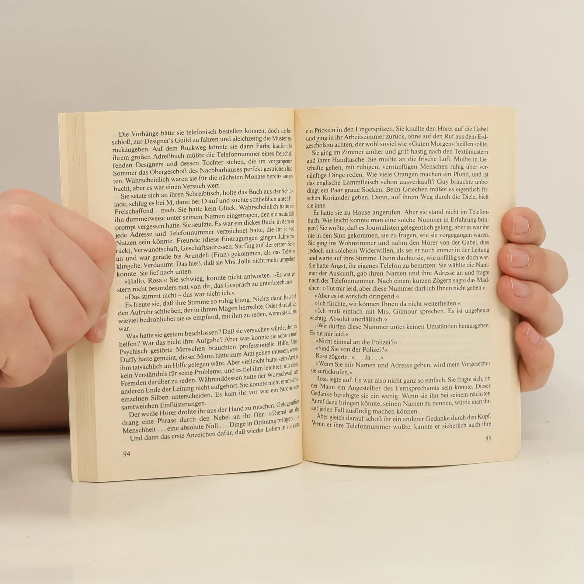 Sie hat zwei Kinder, einen Mann, der sie liebt, und sie ist eine beliebte Radiomoderatorin: Rosa Gilmour ist eine glückliche und erfolgreiche Frau. Dass es jemanden geben könnte, der ihr Böses will, käme ihr nie in den Sinn. Aber ein Verrückter hat es auf sie abgesehen. Jemand, der in Privatleben eindringt, der in ihren Sendungen anruft und der sogar Morddrohungen gegen sie ausspricht. Schließlich schalten Rosa und ihr Mann Leo die Polizei ein. Doch es könnte bereits zu spät sein… (Umschlagtext)