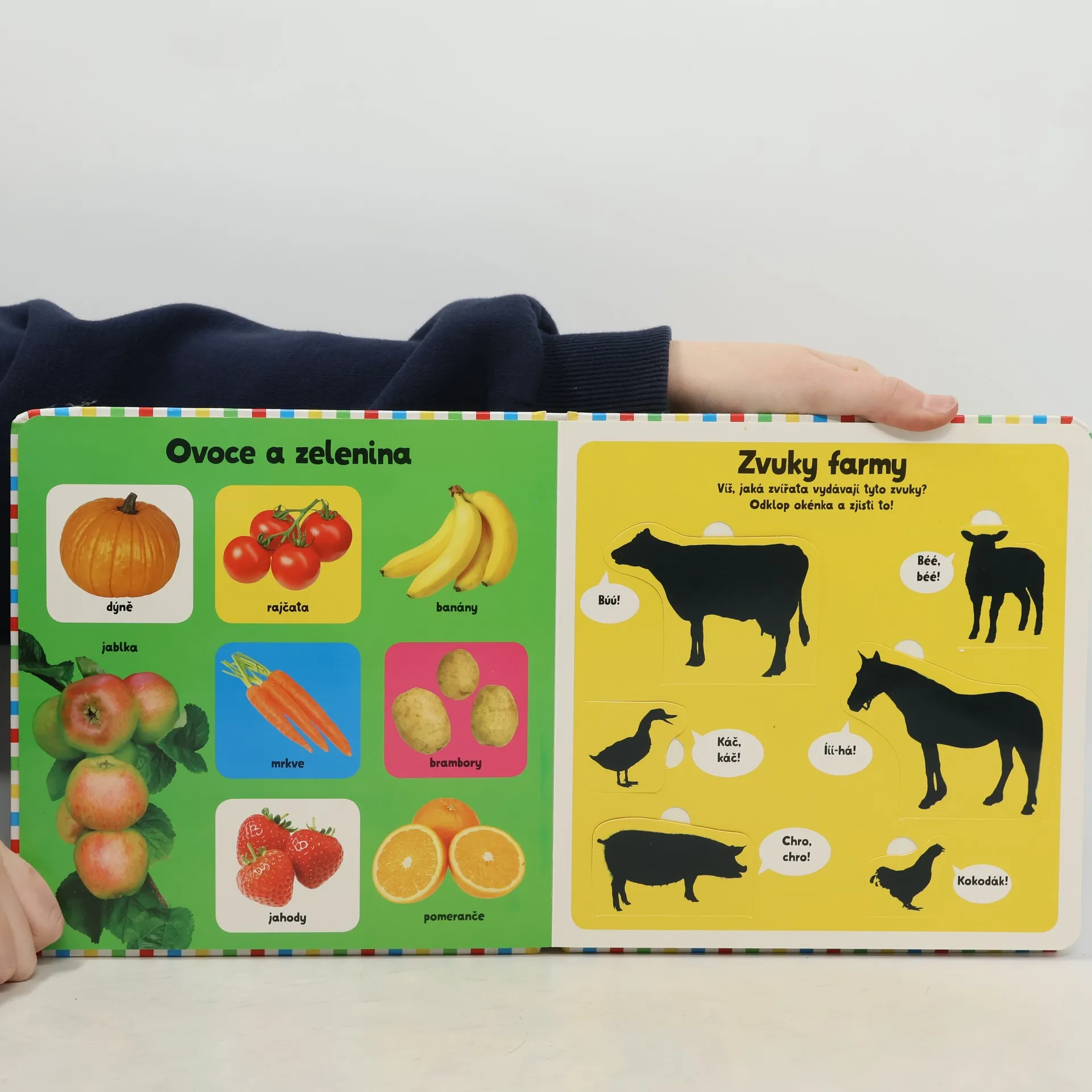 Jak probíhá život a práce v hospodářství. Knížka s tuhými listy a otevíracími okénky.