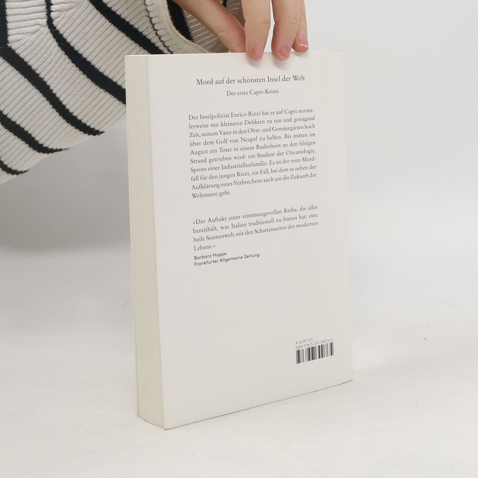 Der Inselpolizist Enrico Rizzi hat es auf Capri zumeist mit kleineren Delikten zu tun und daher genügend Zeit, seinem Vater in den Obst- und Gemüsegärten hoch über dem Golf von Neapel zu helfen. Bis mitten im August ein Toter in einem Ruderboot an den felsigen Strand getrieben wird: Jack Milani, Spross einer Industriellenfamilie und Student der Ozeanologie. Es ist der erste Mordfall für den jungen Rizzi, ein Fall, bei dem es neben der Aufklärung eines Verbrechens auch um die Zukunft der Weltmeere geht.