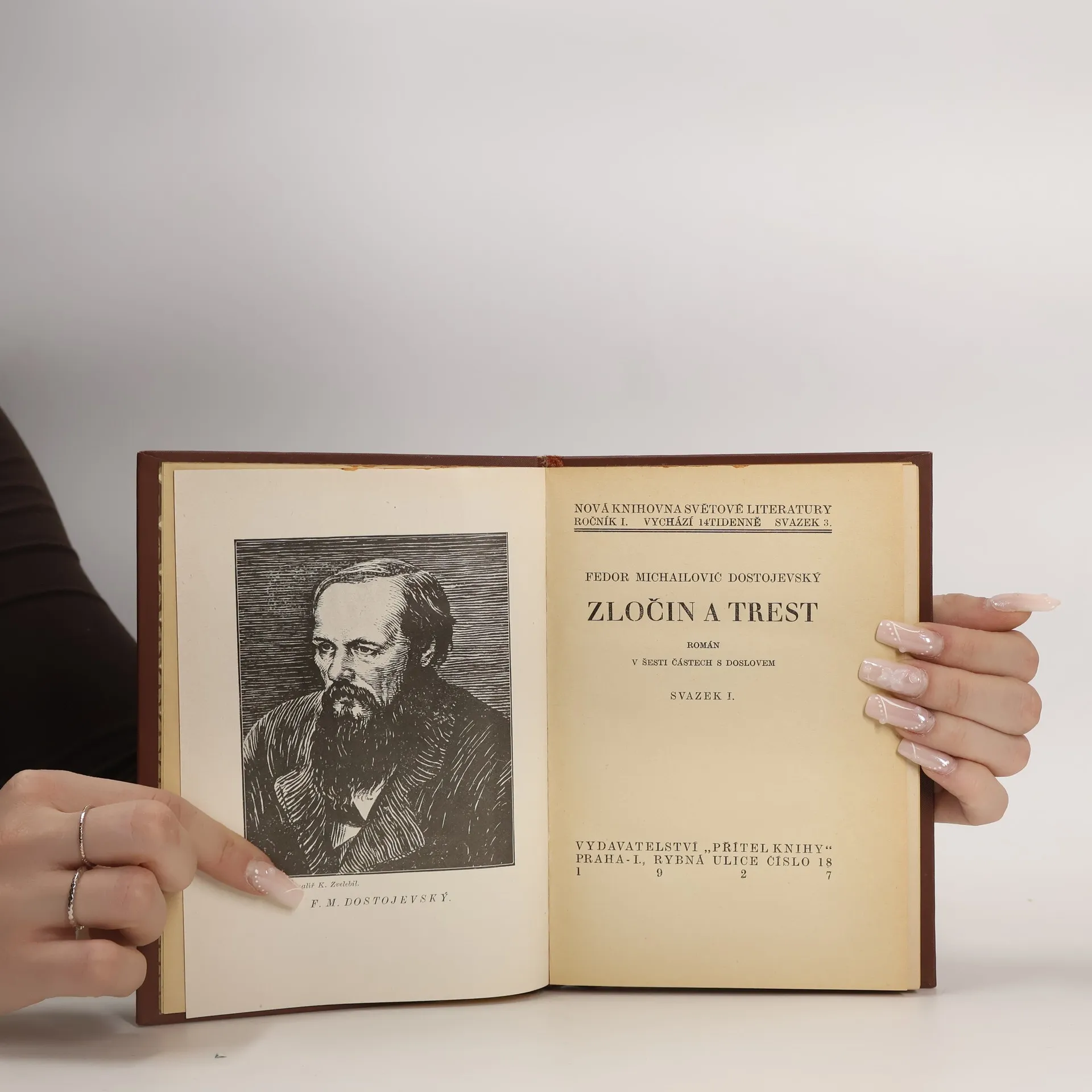 Dvousvazkové vydání. Děj se odehrává v Petrohradě ve druhé polovině 19. století. Hlavní hrdina student Rodion Romanovič Raskolnikov je velmi chudý a právě z nedostatku peněz je nucen odejít ze studií. Rodion žije v zatuchlém pronajatém pokoji, nemá peníze, hladoví, ale přesto nemá zájem si najít nějakou poctivou práci. Jako jediné mu stále ještě zbyl přítel Razumichin, se kterým kdysi studoval na univerzitě. Aby dokončil školu, chce se jeho sestra provdat za bezcharakterního boháče Lužina. Rodion je zásadně proti a sestře sňatek rozmluví. Rodinu napadají hrůzné myšlenky jak lehce přijít k penězům.