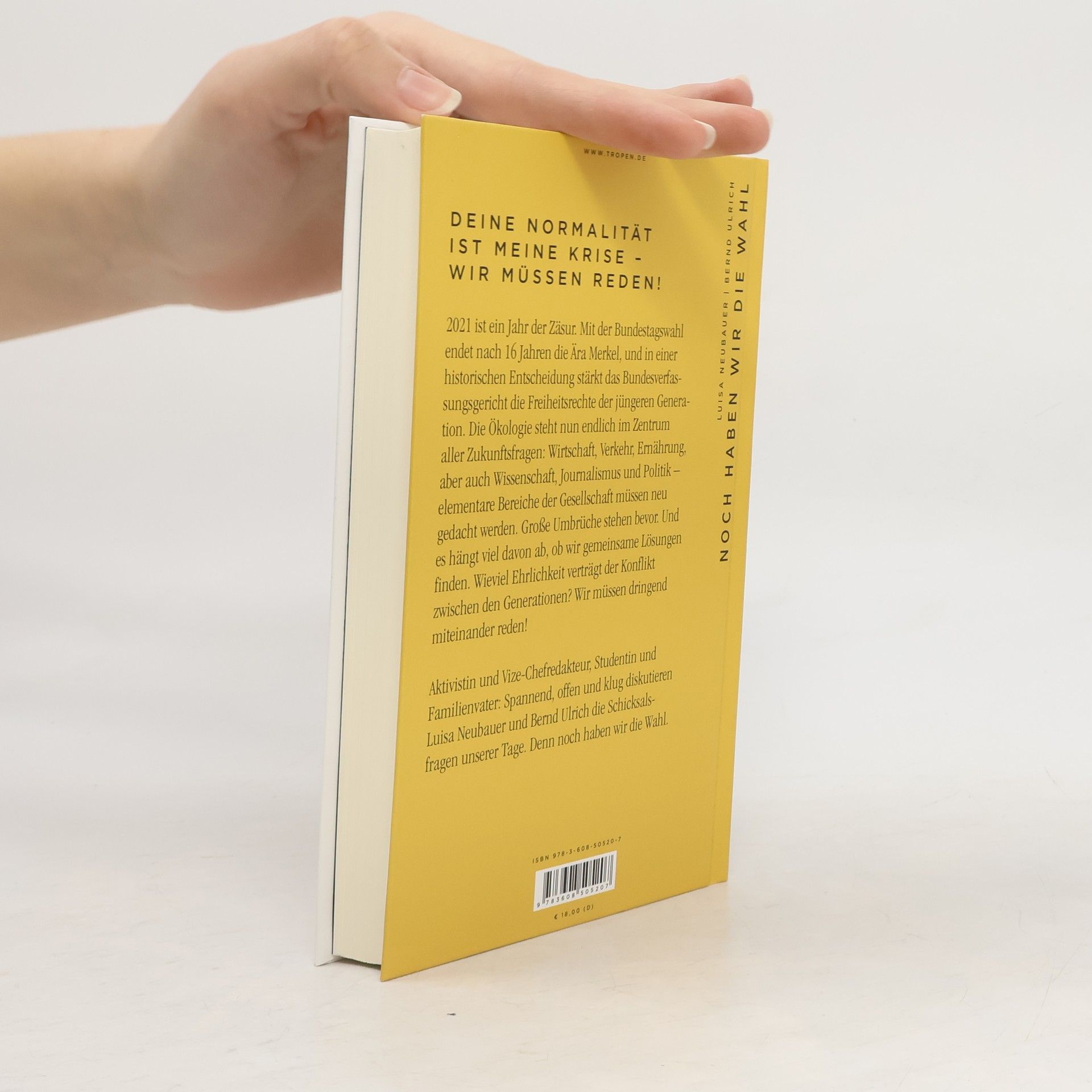 2021 markiert einen Wendepunkt. Mit der Bundestagswahl endet die Ära Merkel, und das Bundesverfassungsgericht stärkt die Freiheitsrechte der jüngeren Generation. Ökologie rückt ins Zentrum aller Zukunftsfragen: Wirtschaft, Verkehr, Ernährung sowie Wissenschaft, Journalismus und Politik müssen neu gedacht werden. Große Umbrüche stehen bevor, und es ist entscheidend, gemeinsame Lösungen zu finden. Der Konflikt zwischen den Generationen erfordert Ehrlichkeit und dringend notwendige Gespräche. Luisa Neubauer und Bernd Ulrich, Aktivistin und Vize-Chefredakteur, Studentin und Familienvater, diskutieren offen und klug die Schicksalsfragen unserer Zeit. Grundlegende Beziehungen sind aus dem Gleichgewicht geraten, und es gibt viel zu klären. Nur durch gemeinsames Handeln und richtige Entscheidungen können wir auch in Zukunft eine Wahl haben. Wie können wir Veränderungen selbst gestalten und Jung und Alt, Mann und Frau, Stadt und Land zusammenbringen? Ist Freiheit ohne Nachhaltigkeit möglich? Neubauer und Ulrich bringen unterschiedliche Perspektiven auf die Klimakrise, das Artensterben, den Populismus und die Freiheit der kommenden Generationen ein. Es ist ein überfälliges Klärungsgespräch zwischen zwei Generationen und eine Analyse einer Welt, in der Ökologie als Ausgangspunkt für alles dient.