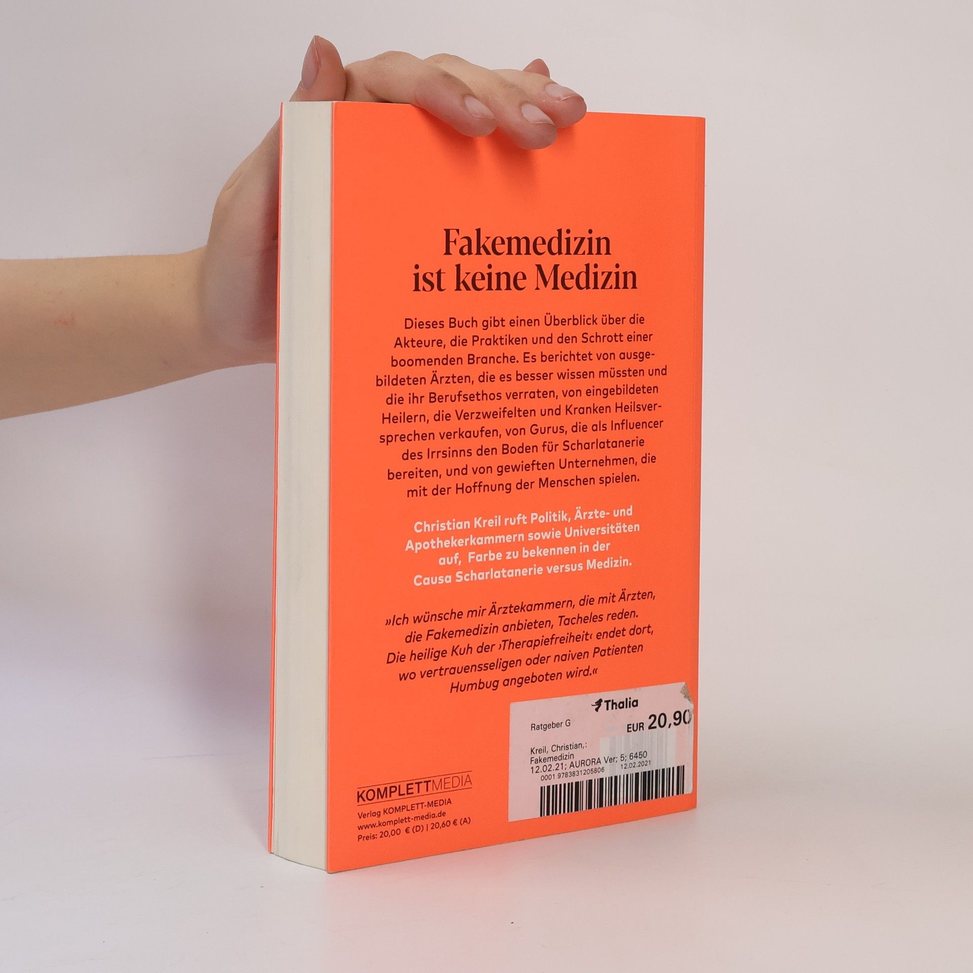 Dieses Buch ist die Abrechnung eines medizinischen Laien: mit ausgebildeten Ärzten, die es besser wissen müssten und die ihr Berufsethos verraten; mit eingebildeten Heilern, die Verzweifelten und Kranken Heilsversprechen verkaufen; mit Gurus, die als Influencer des Irrsinns den Boden für Scharlatanerie bereiten, und mit gewieften Unternehmen, die mit der Hoffnung der Menschen spielen. Es gibt einen Überblick über die Akteure, die Praktiken und den Schrott einer boomenden Branche. Dieses Buch ist ein Aufruf an Politik, Ärzte- und Apothekerkammern sowie Universitäten, Farbe zu bekennen in der Causa Scharlatanerie versus Medizin.