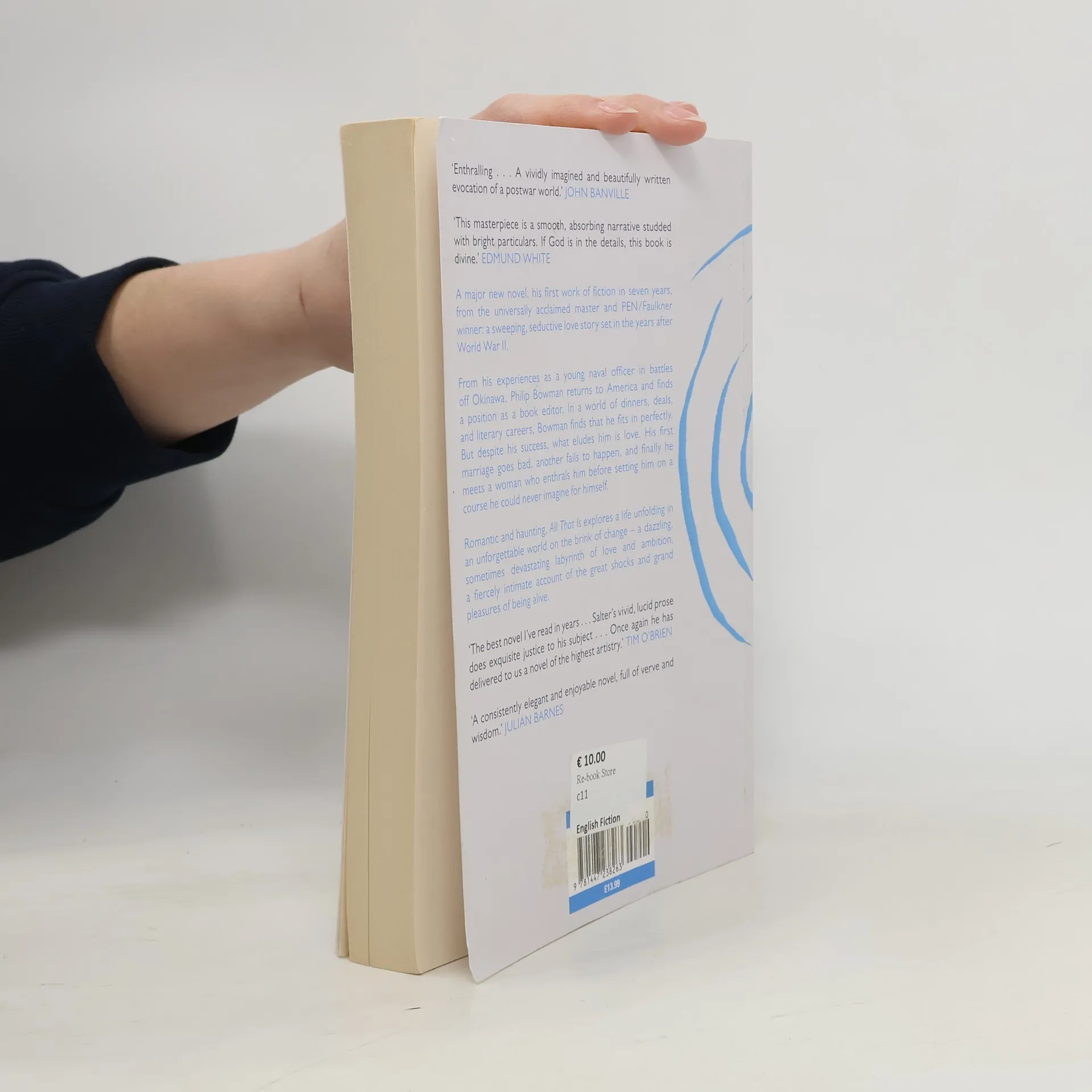 From his experiences as a naval officer in battles off Okinawa during World War II, Philip Bowman returns to America and finds a position as a book editor. He soon inhabits a world where marriages fail as affairs ignite, alcohol reigns, writers struggle, and publishers hustle. It is a world in which to immerse himself, a world of intimate connections and surprising triumphs. But the deal that Philip cannot seem to close is love: one marriage goes bad; another fails to happen; and, finally, he meets a woman who enthrals, then betrays him, setting him on a course he could never have imagined for himself. Written with Salter's signature economy of prose, All That Is fiercely, fluidly explores a life unfolding in a world on the brink of change: a dazzling, sometimes devastating labyrinth of love and ambition, of the small shocks and grand pleasures of being alive. All That Is is a sweeping, seductive love story set in post-World War II America that tells of one man's great passions and regrets over the course of his lifetime and draws together the great themes of Salter's writing: warfare, love, sex and marriage, and what it means to write.