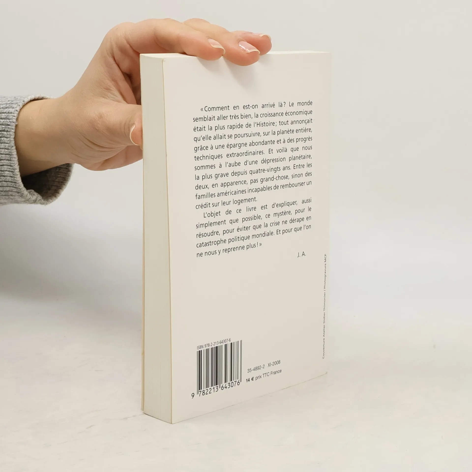 «Comment en est-on arrivé là? Le monde semblait aller très bien, la croissance économique était la plus rapide de l’Histoire; tout annonçait qu’elle allait se poursuivre, sur la planète entière, grâce à une épargne abondante et à des progrès techniques extraordinaires. Et voilà que nous sommes à l’aube d’une dépression planétaire, la plus grave depuis quatre-vingts ans. Entre les deux, en apparence, pas grand-chose, sinon des familles américaines incapables de rembourser un crédit sur leur logement.L’objet de ce livre est d’expliquer, aussi simplement que possible, ce mystère, pour le résoudre, pour éviter que la crise ne dérape en catastrophe politique mondiale. Et pour que l’on ne nous y reprenne plus!»J. A.