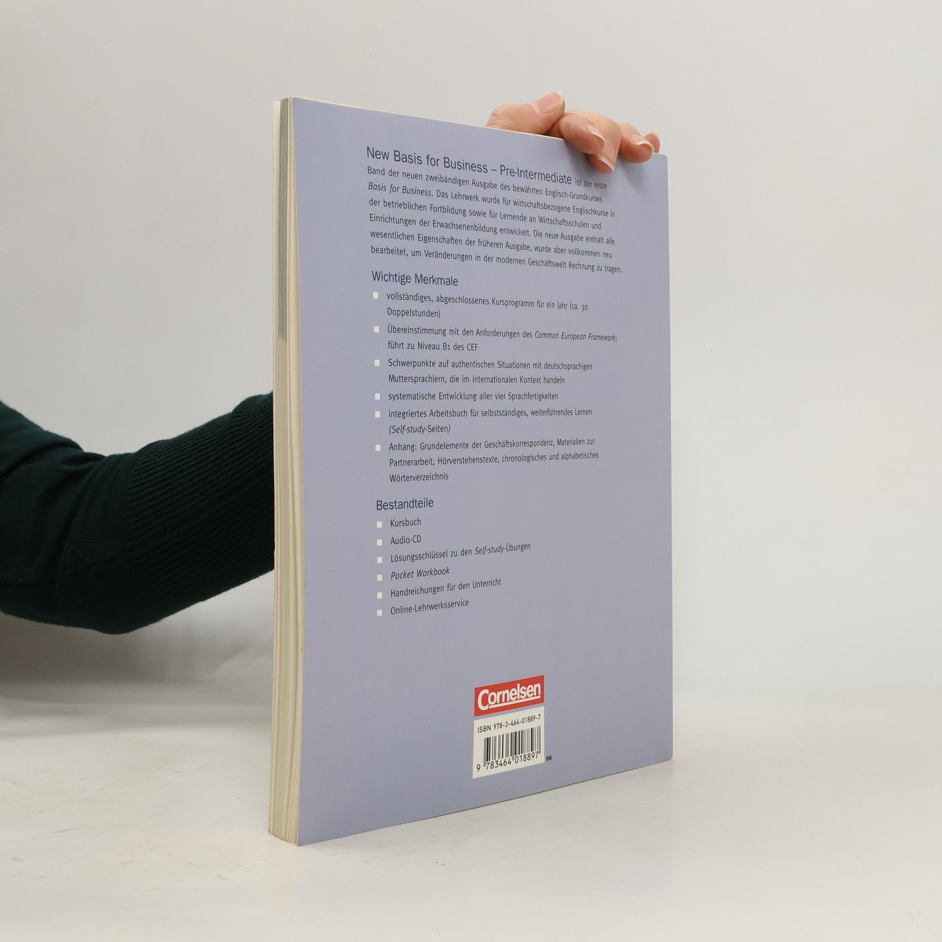 Informationen zur Reihenausgabe: Das zweibändige Lehrwerk eignet sich für die berufsbezogene Aus- und Weiterbildung. Jeder Band ist für etwa 30 Doppelstunden konzipiert. Pre-Intermediate Der erste Band führt zum Niveau B1. In jeder Unit werden Strukturen und Redewendungen im Kontext eingeführt und gründlich geübt (Teil A und B), der anschließende Business File bezieht sich direkt auf Tätigkeiten des Berufsalltags . Jede Unit endet mit einem self study -Teil. Intermediate Der zweite Band führt bis zum Niveau B2. Jede der zehn Units besteht aus drei Teilen: * Teil A frischt vorhandene Grammatikkenntnisse auf. * Teil B baut Sprachfertigkeiten aus. * Teil C trainiert Lese- und Hörverständnis anhand authentischer Aufgabenstellungen. Darauf folgen die self study- Seiten. Fünf Business Files im Anhang greifen Inhalte und Situationen aus den Units auf. Further materials Das Pocket Workbook bietet zusätzliche Übungen, Worträtsel, Tipps sowie Extra-Wortschatz und eignet sich besonders für das Lernen unterwegs. Im Internet finden Sie zusätzliche worksheets zu Basis for Business - Third Edition .