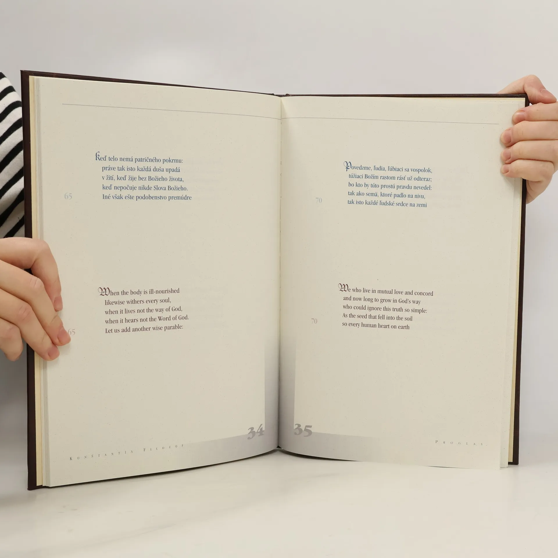 Proglas – čiže Predslov Konštantína Filozofa je veršovaný predhovor k staroslovienskemu prekladu Biblie... Zo staroslovienčiny preložil univ. prof. PhDr. Eugen Pauliny a prebásnil PhDr. Viliam Turčány. Úvod napísal Ján Chryzostom kardinál Korec. Doslov a Poznámky napísal PhDr. Viliam Turčány. Do angličtiny preložila Mgr. Michaela Chorváthová. Recenzovali doc. PhDr. Milan Rúfus a prof. PhDr. ThDr. Štefan Vragaš. Ilustroval Akad. mal. Mikuláš Klimčák. Graficky upravil Akad. mal. Stanislav Stankoci. Veľký formát, koženková väzba, ilustroval Vincent Hložník