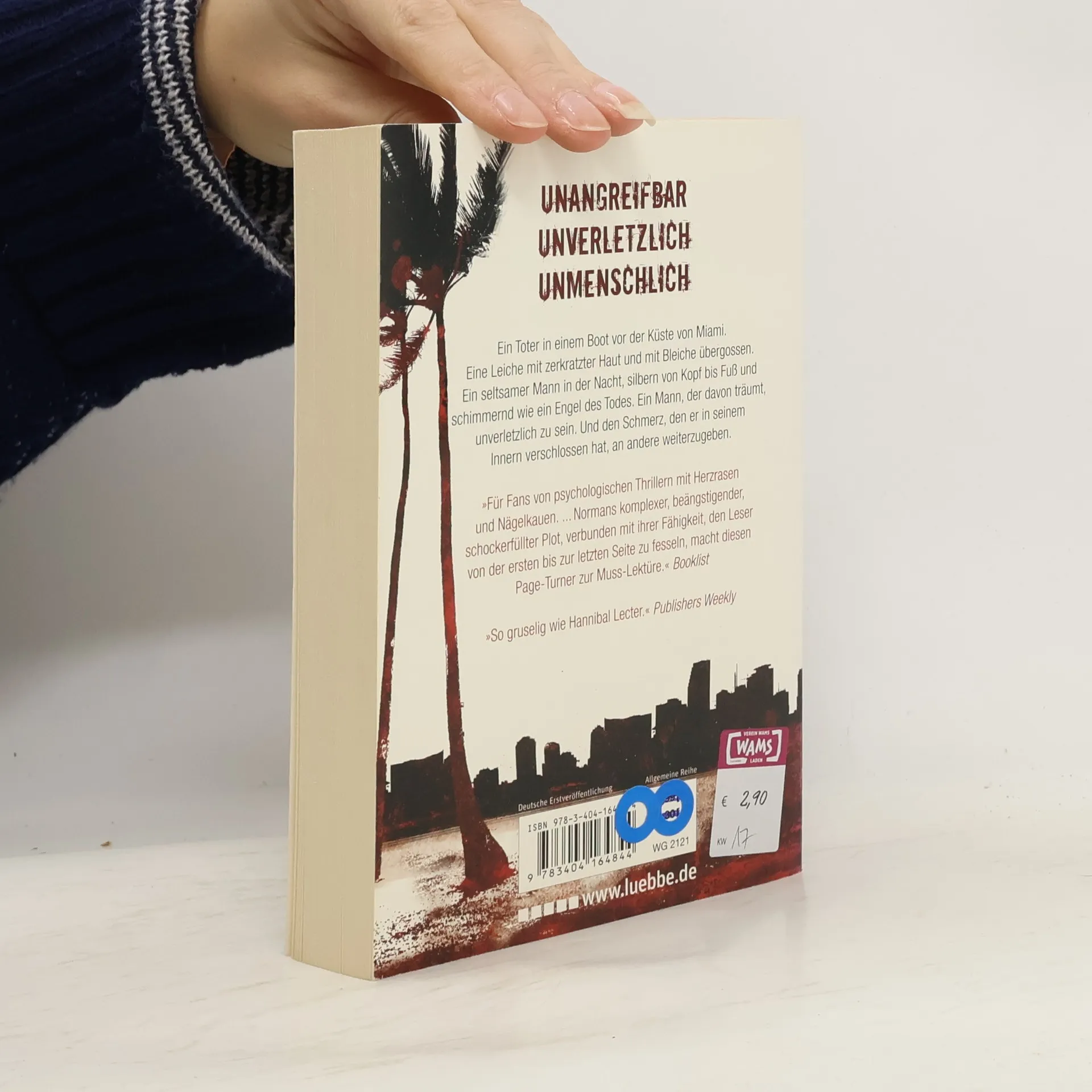 Ein Toter in einem Boot vor der Küste von Miami. Eine Leiche mit zerkratzter Haut und mit Bleiche übergossen. Ein seltsamer Mann in der Nacht, silbern von Kopf bis Fuß und schimmernd wie ein Engel des Todes. Ein Mann, der davon träumt, unverletzlich zu sein. Und den Schmerz, den er in seinem Innern verschlossen hat, an andere weiterzugeben.