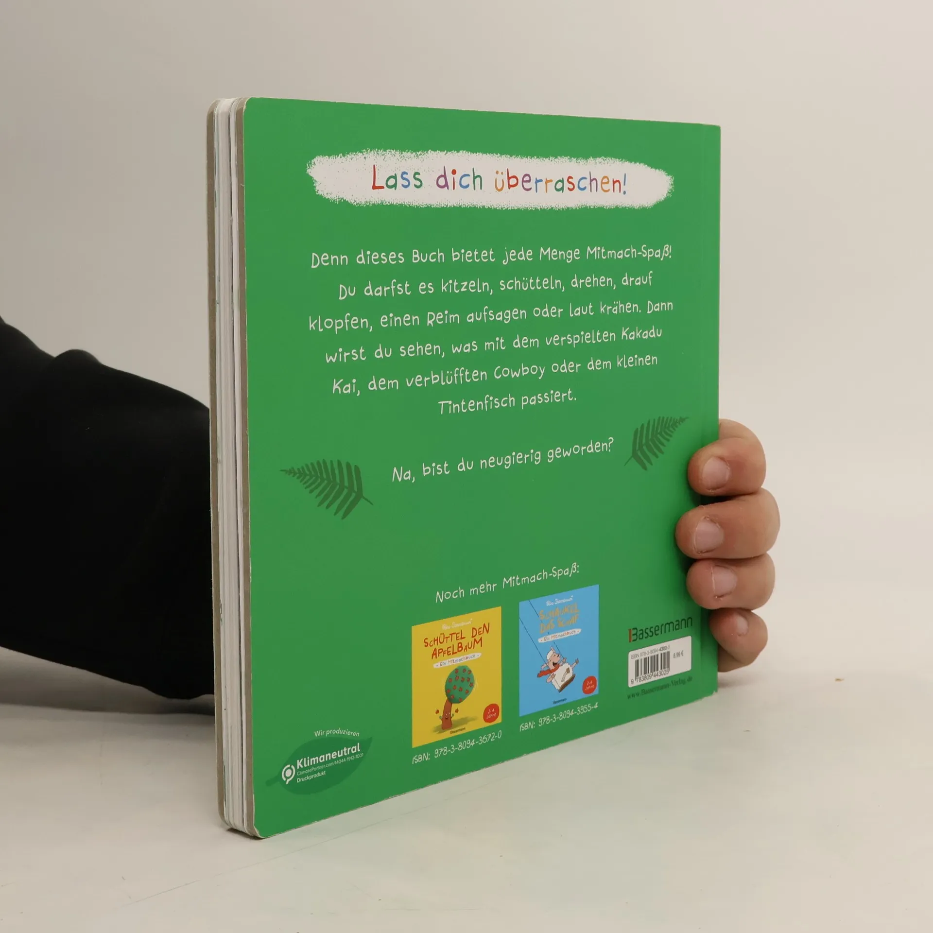 Was tut man, wenn ein Hahn Halsschmerzen bekommt? Warum ist es hilfreich, einem Geier einen Reim nachzurufen? Und wie bekommt Erfinder Eddi seine Seifenblasenmaschine in Gang gesetzt? Mit diesem lustigen Bilderbuch können Kinder ab 2 Jahren selbst aktiv werden: Sie dürfen das Buch schütteln, schaukeln, darauf herumklopfen oder über seine Seiten pusten, je nachdem, was die kleine Geschichte verlangt. Ein Buch voller Überraschungen für jede Menge Spiel, Spaß und Spannung! Ausstattung: durchgehend vierfarbige Abbildungen