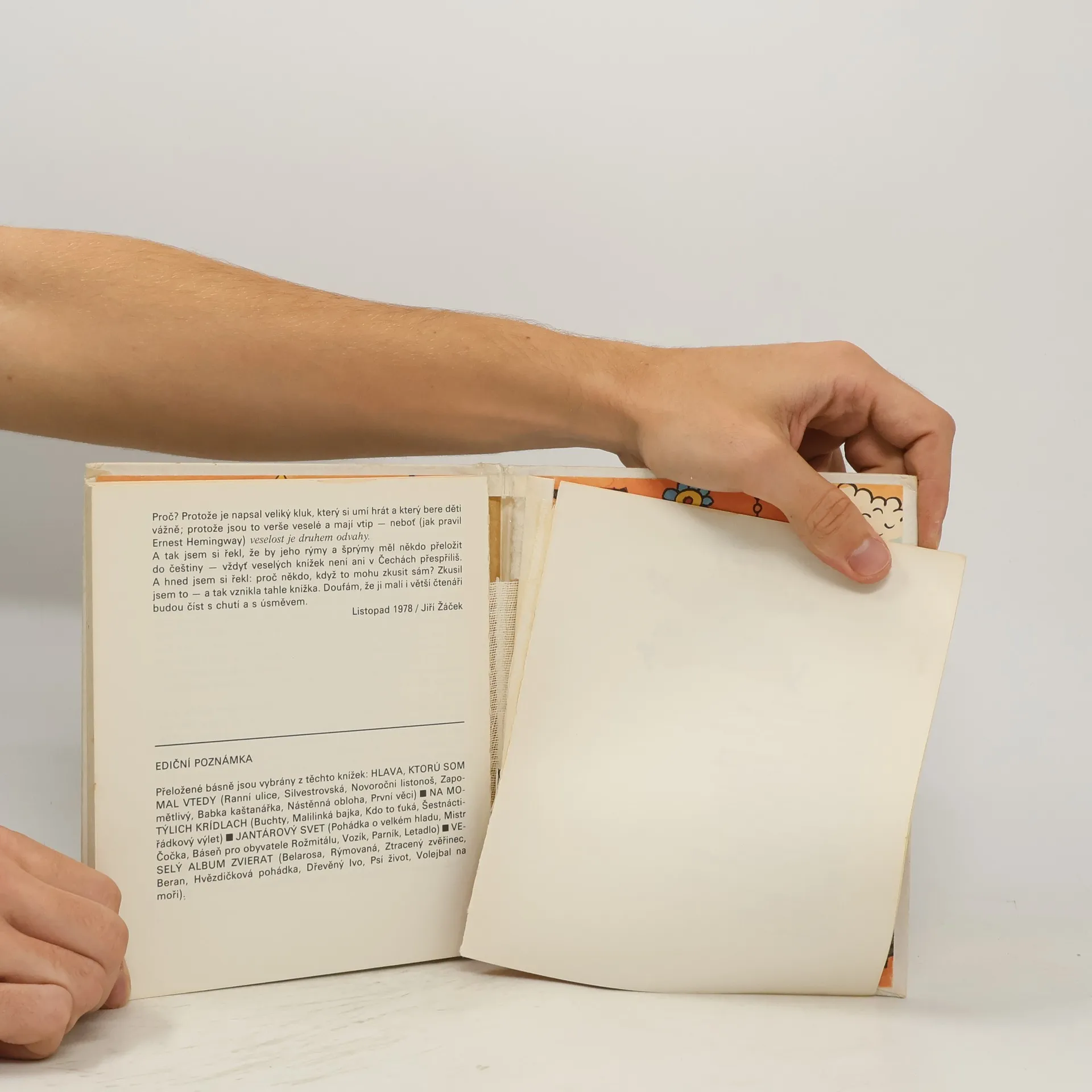Spírka veselých básniček pro děti s rozpustilými obrázky, např. Pohádka o velkém hladu, Malilinká bajka, Dřevěný Ivo, Hvězdičková pohádka.