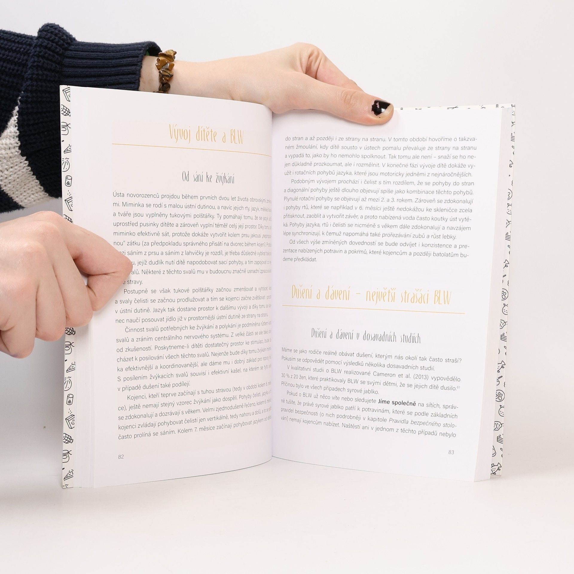 Baby-led weaning (BLW) je světově rozšířeným způsobem zavádění příkrmů do jídelníčku zdravých kojenců od zhruba šesti měsíců věku. Principem celého konceptu je respektující přístup při zavádění prvního nemléčného pokrmu do stravy kojenců a vytváření jídelních zvyklostí nenásilným způsobem, bez nucení ze strany pečujících osob. Důraz je kladen na společné stolování v rámci pestrého a vyváženého jídelníčku celé rodiny. Zásadní úlohu při zavádění příkrmů metodou BLW hraje bezpečnost jídla předkládaného dětem. Musí odpovídat schopnostem a dovednostem v určitém období jejich vývojové zralosti.Součástí knihy jsou recepty na domácí jídla středomořské kuchyně sestavené tak, aby je mohly jíst děti spolu s rodiči už v kojeneckém věku, kdy se metoda BLW v praxi uplatňuje nejvíce.Kniha přináší více pohledů na přínosy BLW. Shrnuje nejpodstatnější informace, které jsou ve spojitosti s touto metodou v odborné literatuře dostupné, zároveň uvádí příklady z praxe a odpovídá na dotazy, které pečující osoby v této oblasti trápí. Pro srozumitelnost a přehlednost je doplněna o grafy, tabulky a fotografie.