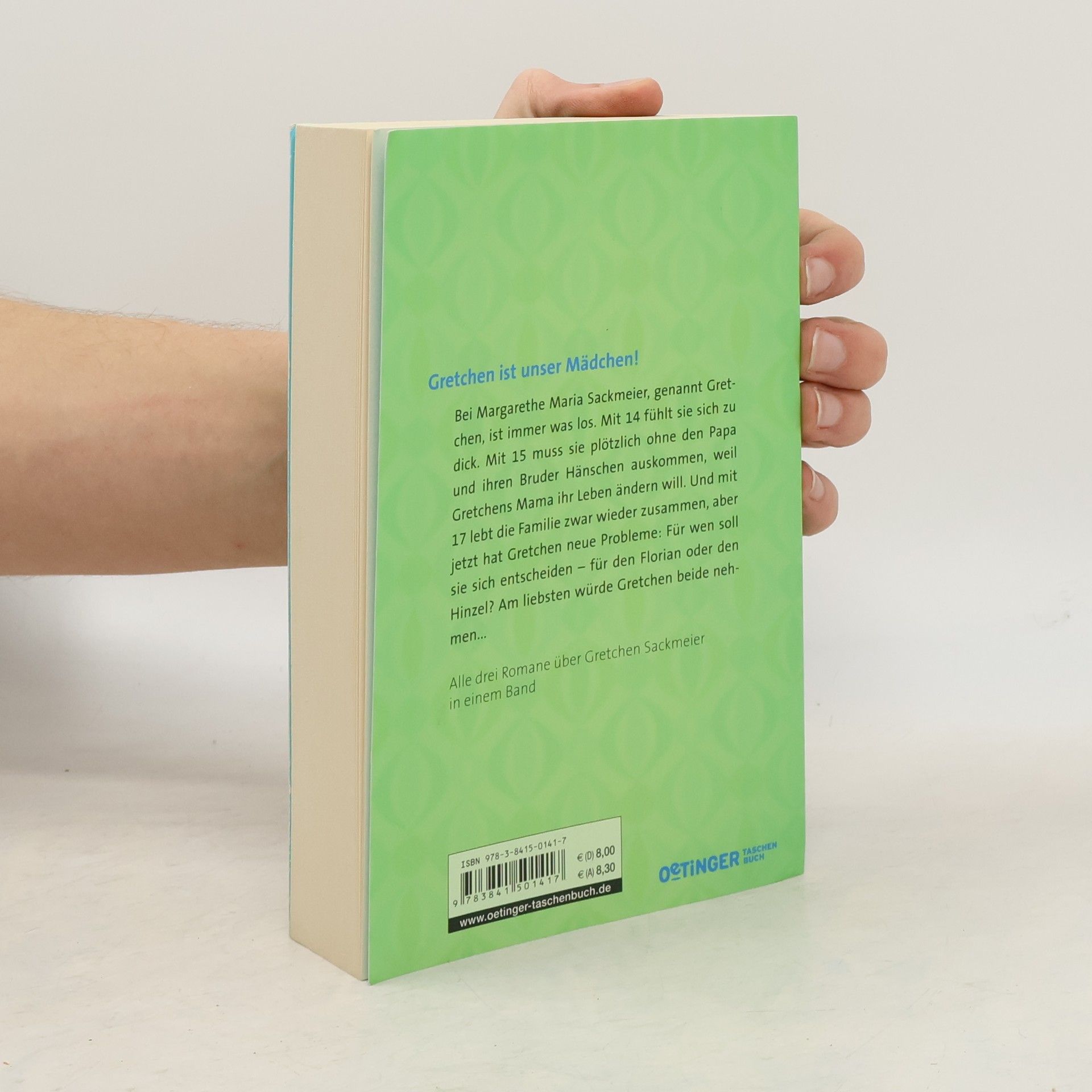 Bei Margarethe Maria Sackmeier, genannt Gretchen, ist immer was los. Mit 14 fühlt sie sich zu dick. Mit 15 muss sie plötzlich ohne den Papa auskommen und ohne ihren Bruder Hänschen. Denn Gretchens Mama hat sich entschlossen, ihr Leben zu ändern und sich zu emanzipieren. Als Gretchen 17 ist, da lebt die Familie wieder zusammen. Aber jetzt hat Gretchen neue Probleme. Für wen soll sie sich entscheiden - für den Florian oder den Hinzel? Am liebsten würde Gretchen beide nehmen... Alle drei Romane über Gretchen in einem Band: Lesespaß hoch drei!