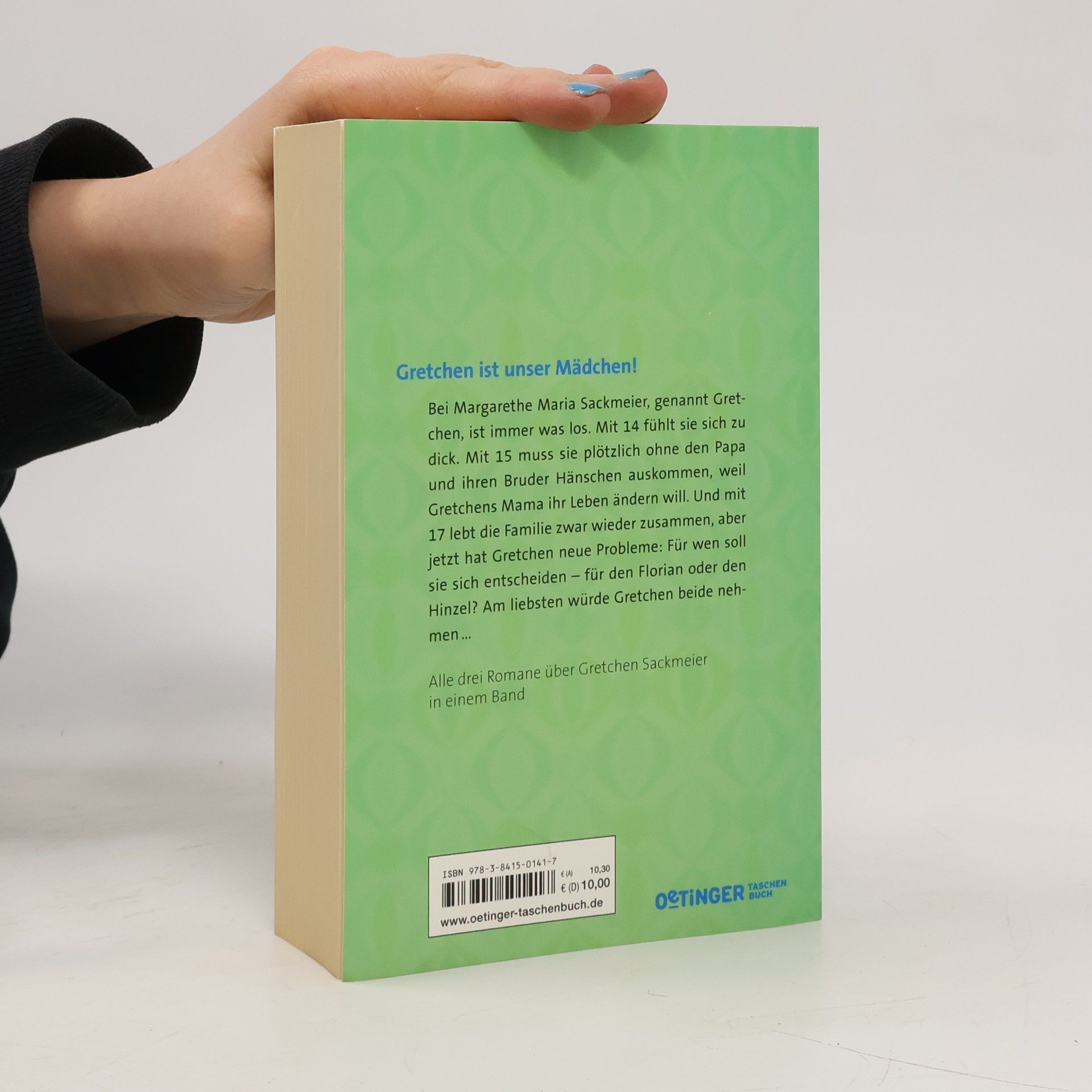 Bei Margarethe Maria Sackmeier, genannt Gretchen, ist immer was los. Mit 14 fühlt sie sich zu dick. Mit 15 muss sie plötzlich ohne den Papa auskommen und ohne ihren Bruder Hänschen. Denn Gretchens Mama hat sich entschlossen, ihr Leben zu ändern und sich zu emanzipieren. Als Gretchen 17 ist, da lebt die Familie wieder zusammen. Aber jetzt hat Gretchen neue Probleme. Für wen soll sie sich entscheiden - für den Florian oder den Hinzel? Am liebsten würde Gretchen beide nehmen... Alle drei Romane über Gretchen in einem Band: Lesespaß hoch drei!