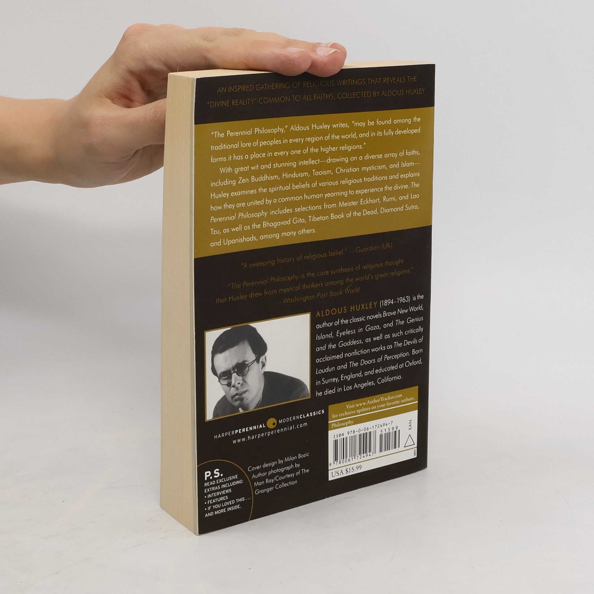 An inspired gathering of religious writings that reveals the "divine reality" common to all faiths, collected by Aldous Huxley "The Perennial Philosophy," Aldous Huxley writes, "may be found among the traditional lore of peoples in every region of the world, and in its fully developed forms it has a place in every one of the higher religions." With great wit and stunning intellect—drawing on a diverse array of faiths, including Zen Buddhism, Hinduism, Taoism, Christian mysticism, and Islam—Huxley examines the spiritual beliefs of various religious traditions and explains how they are united by a common human yearning to experience the divine. The Perennial Philosophy includes selections from Meister Eckhart, Rumi, and Lao Tzu, as well as the Bhagavad Gita, Tibetan Book of the Dead, Diamond Sutra, and Upanishads, among many others.